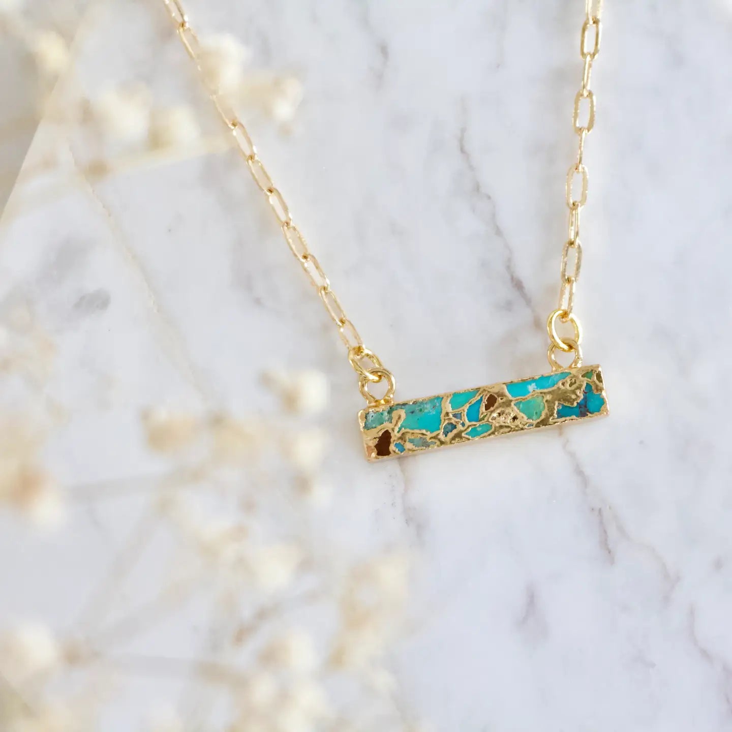 Aquamarine Quartz Rectangle Necklace