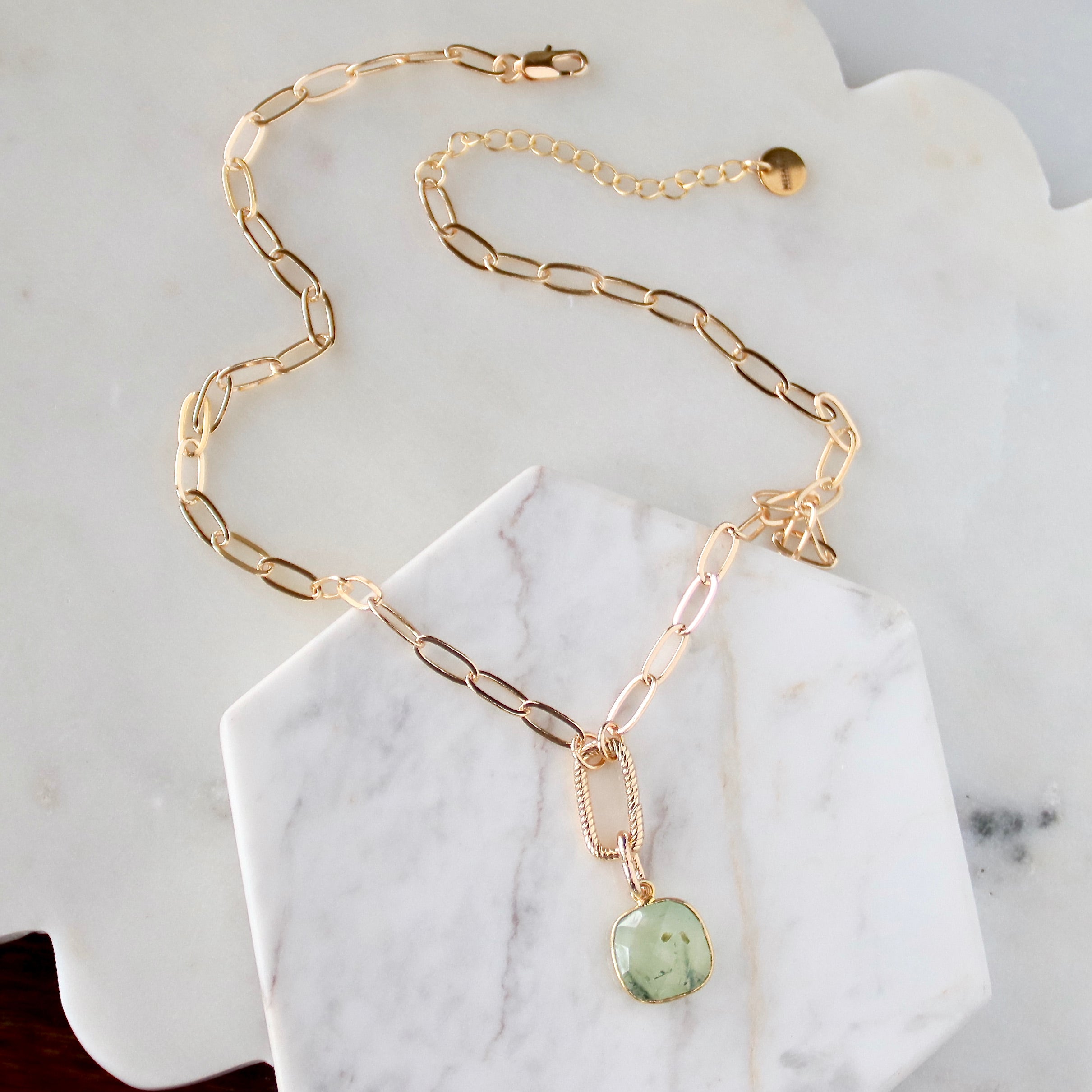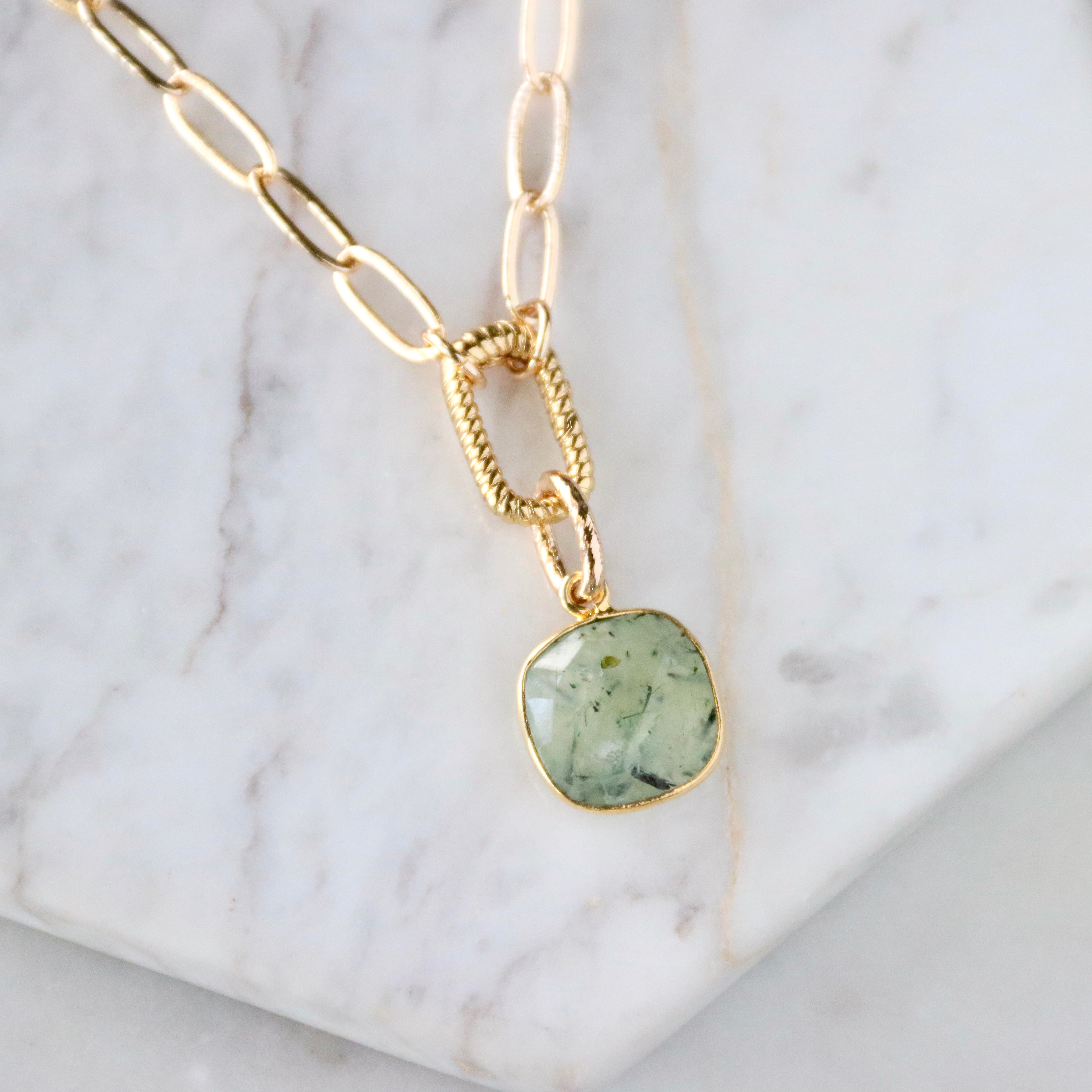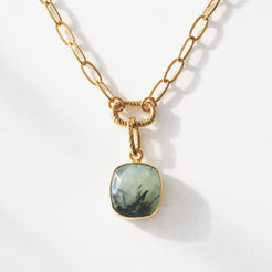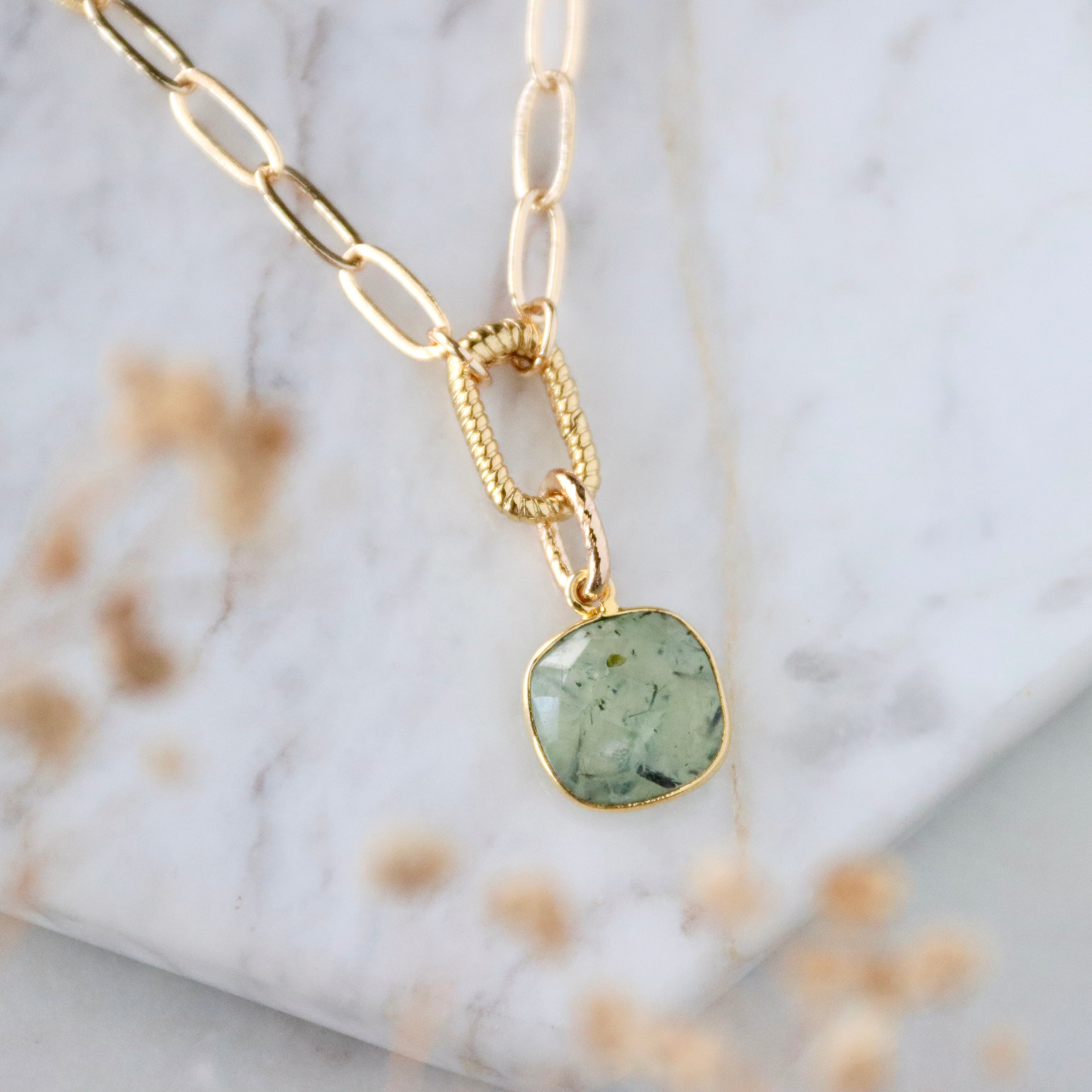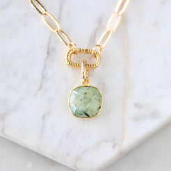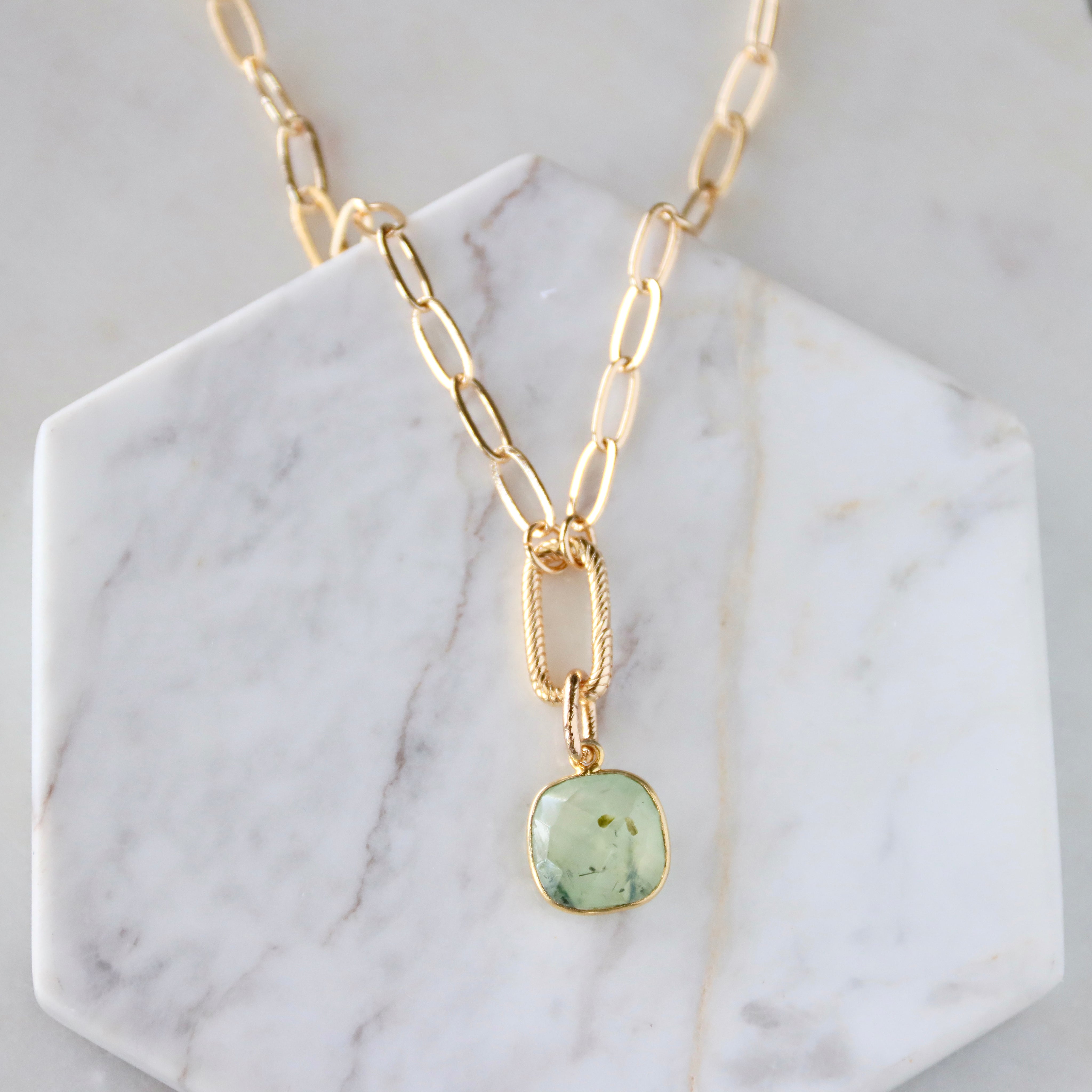 Lever charm necklace Details:• MATERIAL: 18K gold plated over brass, faceted moss perinite • PENDANT SIZE: 14mm• CHAI...