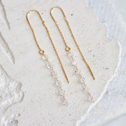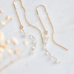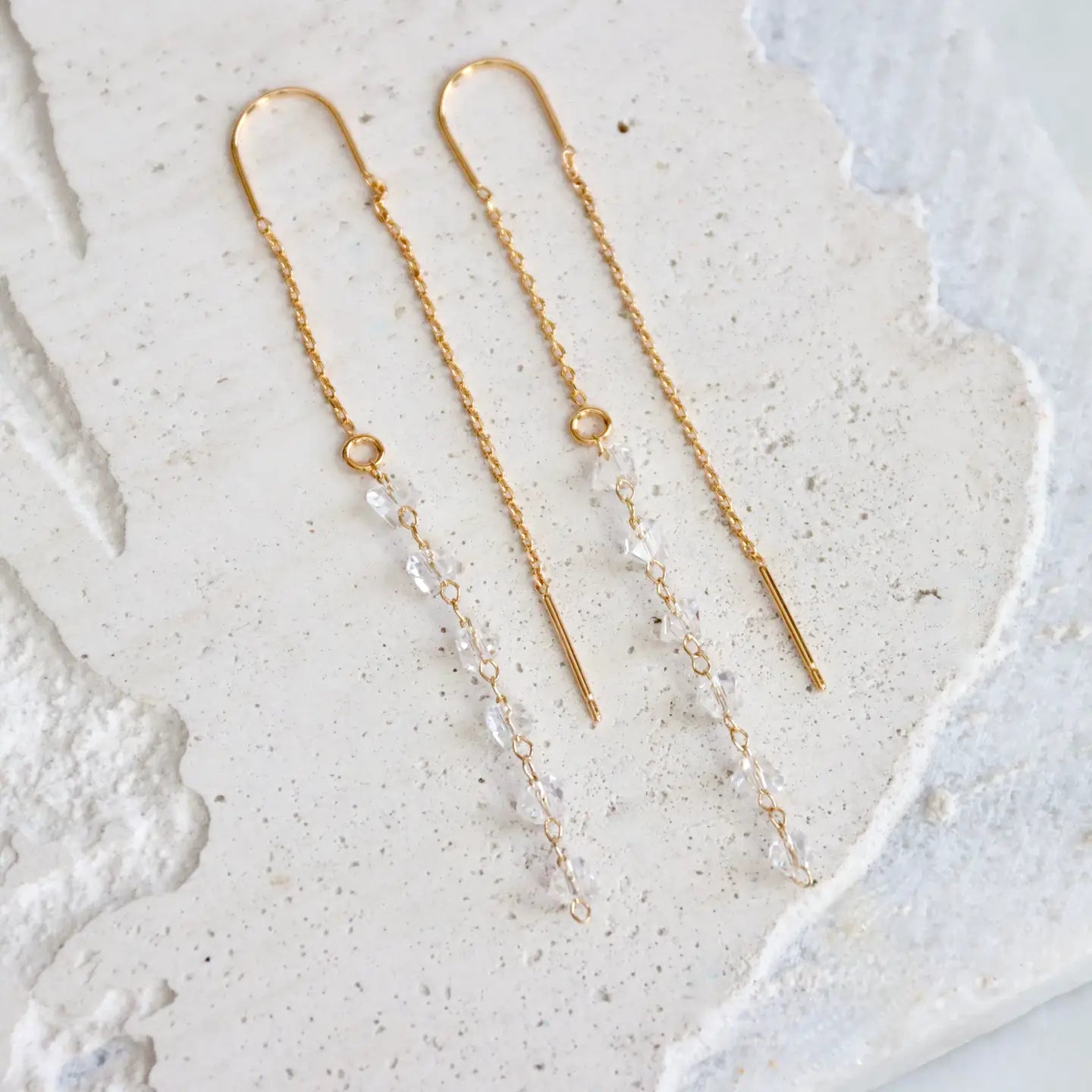 Gold-plated crystal nugget threader earrings  approximately 3" drop from the earlobe Details:• MATERIAL: 18K gold-pla...