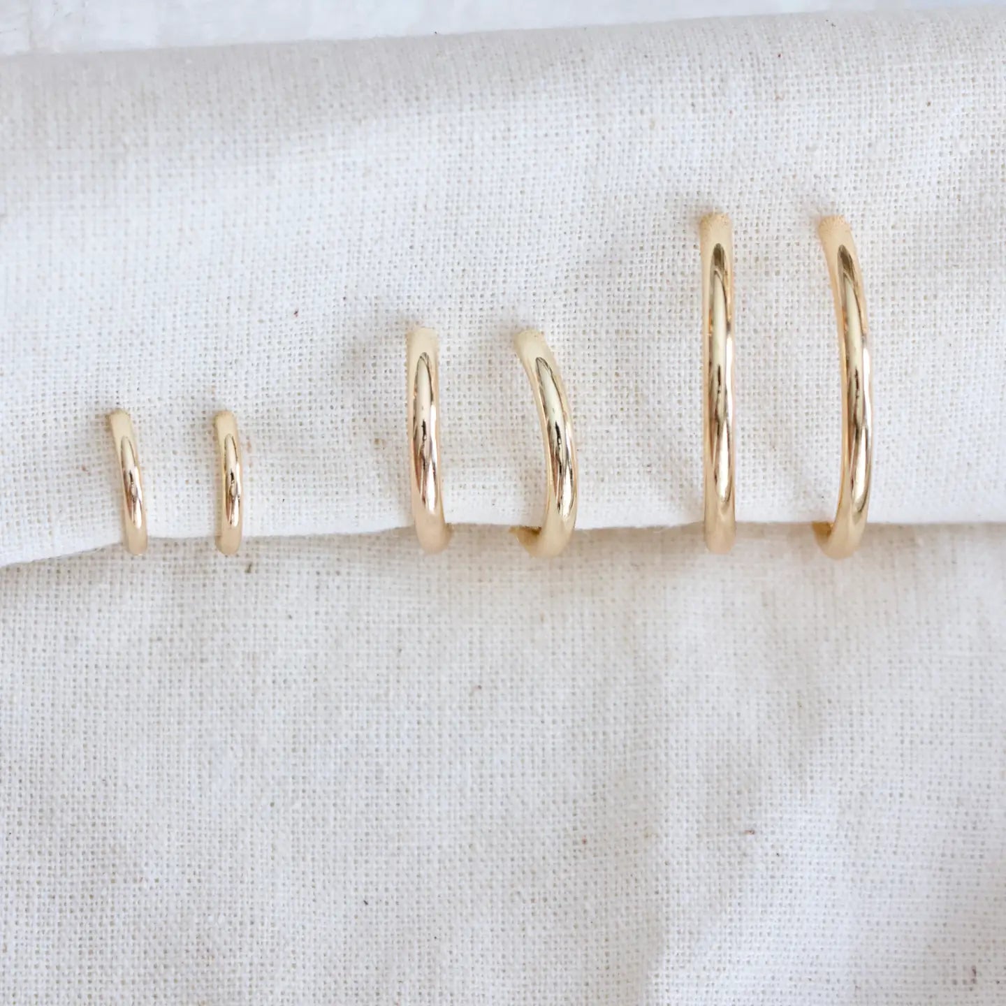 Everyday Hoop Earrings Light weight Details: • MATERIAL: 18K gold plated over brass, lead and nickel free • SIZE: 14mm, 20mm, 30mm