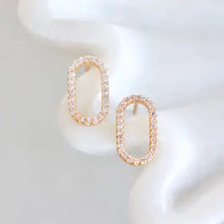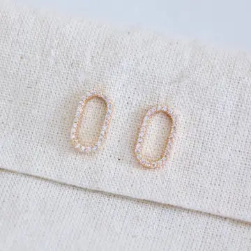 Pave CZ Oval Earrings Light weight Details: • MATERIAL: CZ, 18K gold plated over brass, lead and nickel free • SIZE: 14x8mm Arrives on a branded, lipped earring card