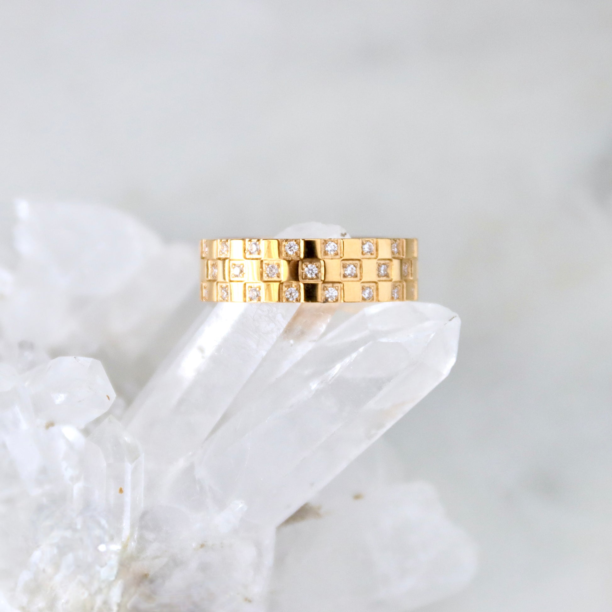 CZ Checker Board RingWaterproof, Tarnish Free, and Hypoallergenic