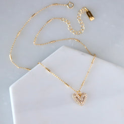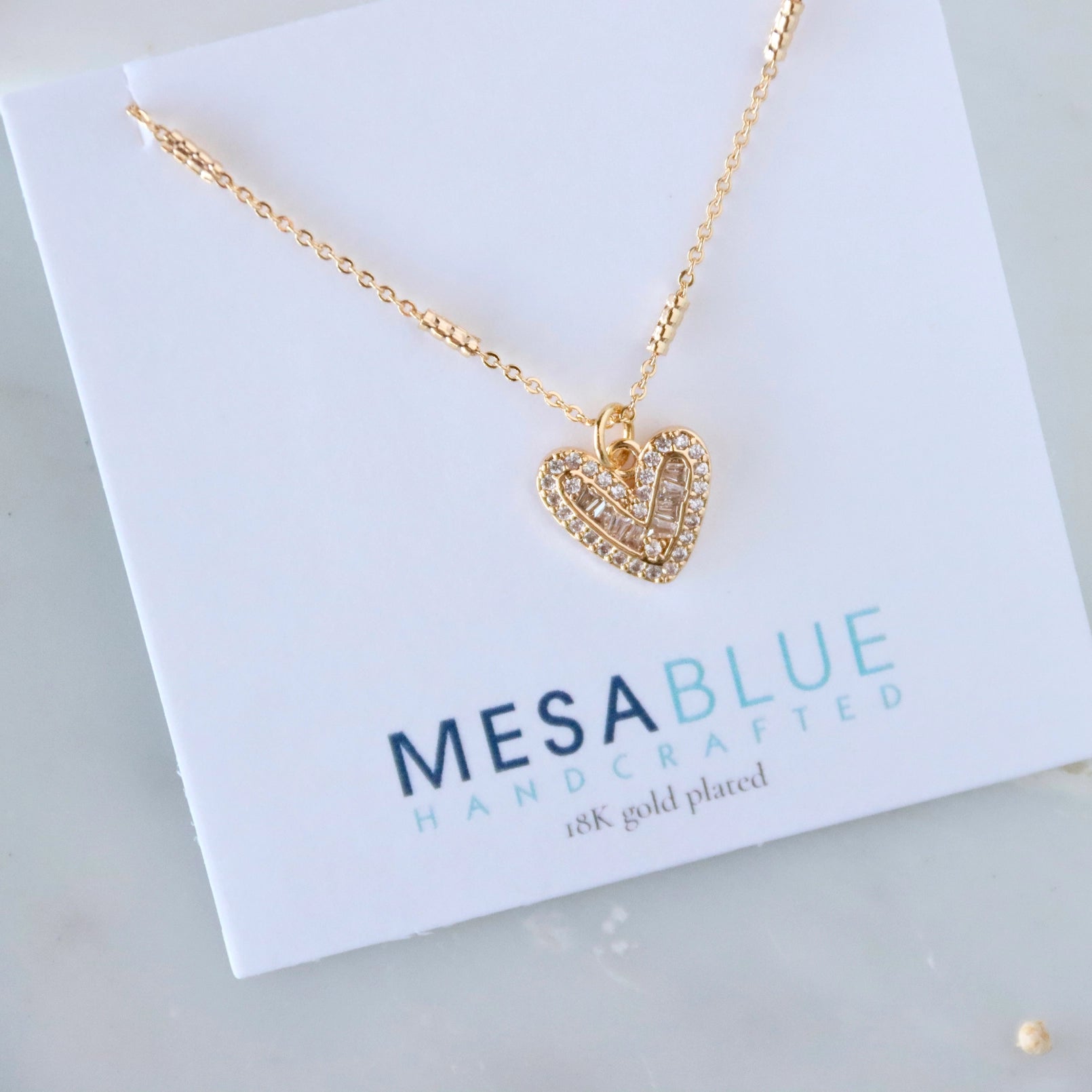Details:• MATERIAL: 18K gold plated over brass, pave cubic zirconia stones• PENDANT SIZE: 12mm• CHAIN LENGTH: 16" + 1...