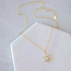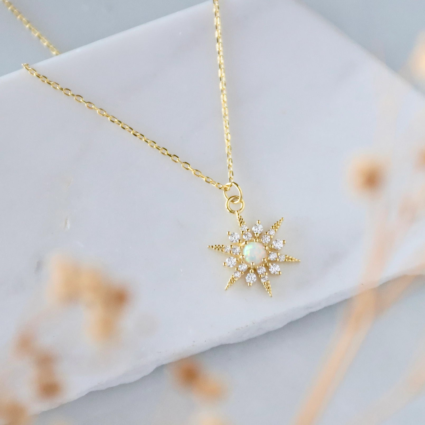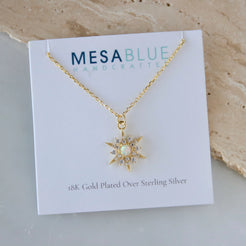 Details: • MATERIAL: Opal charm, 18K gold-plated over sterling silver • PENDANT SIZE: 30mm • CHAIN LENGTH: 16" + 2" extender chain • CLASP STYLE: Spring ring • PACKAGING: Arrives on a branded card