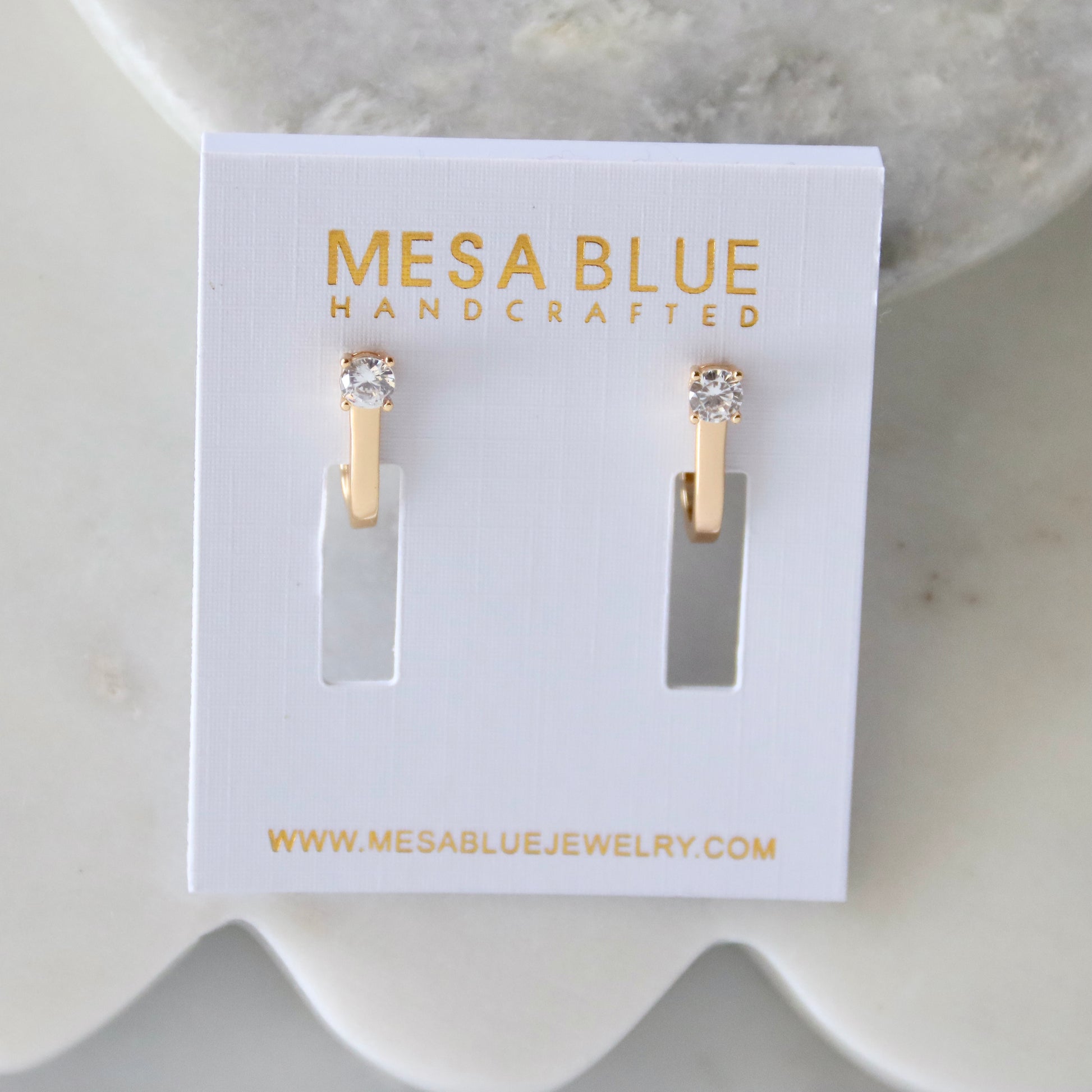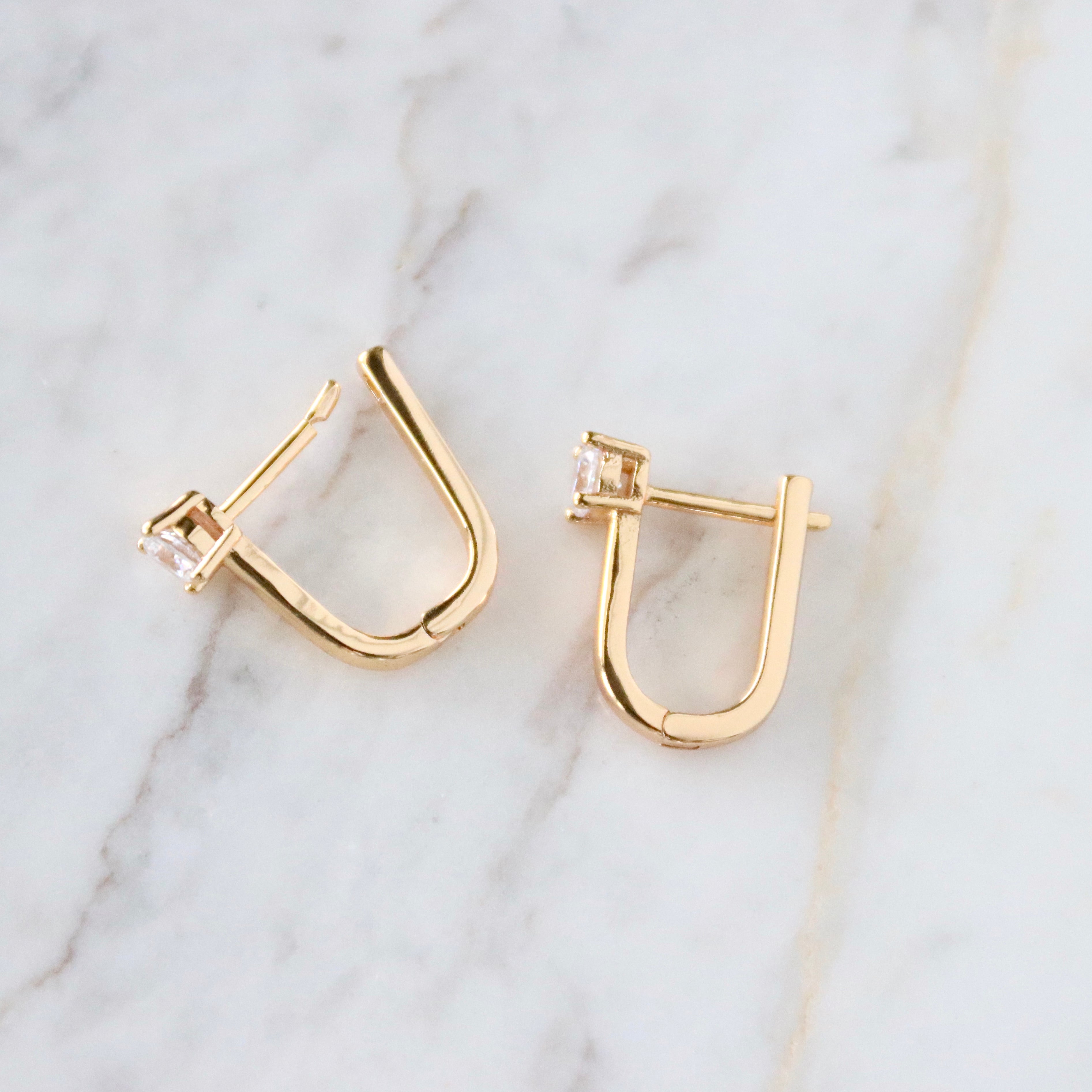 One touch gold plated  U hoop Details: • MATERIAL: 18K gold plated, CZ• HOOP SIZE: 14x15mm, 4mm CZ stone