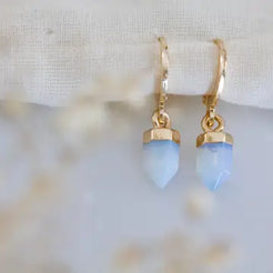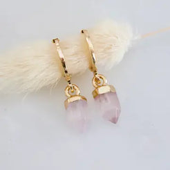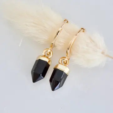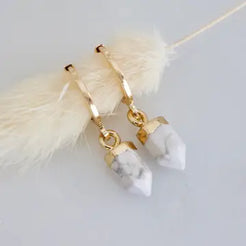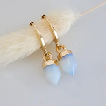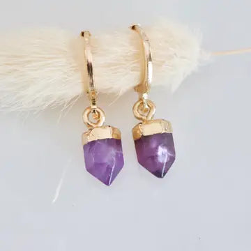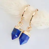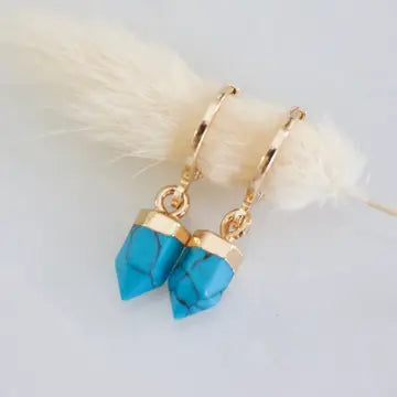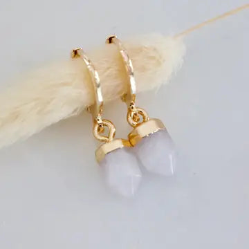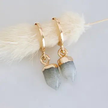 Details: • MATERIAL: 18K gold plated, faceted healing stone • HOOP SIZE: 14x12mm • STONE SIZE: 6x10mm