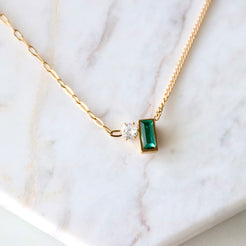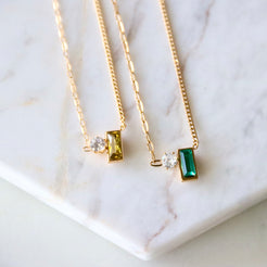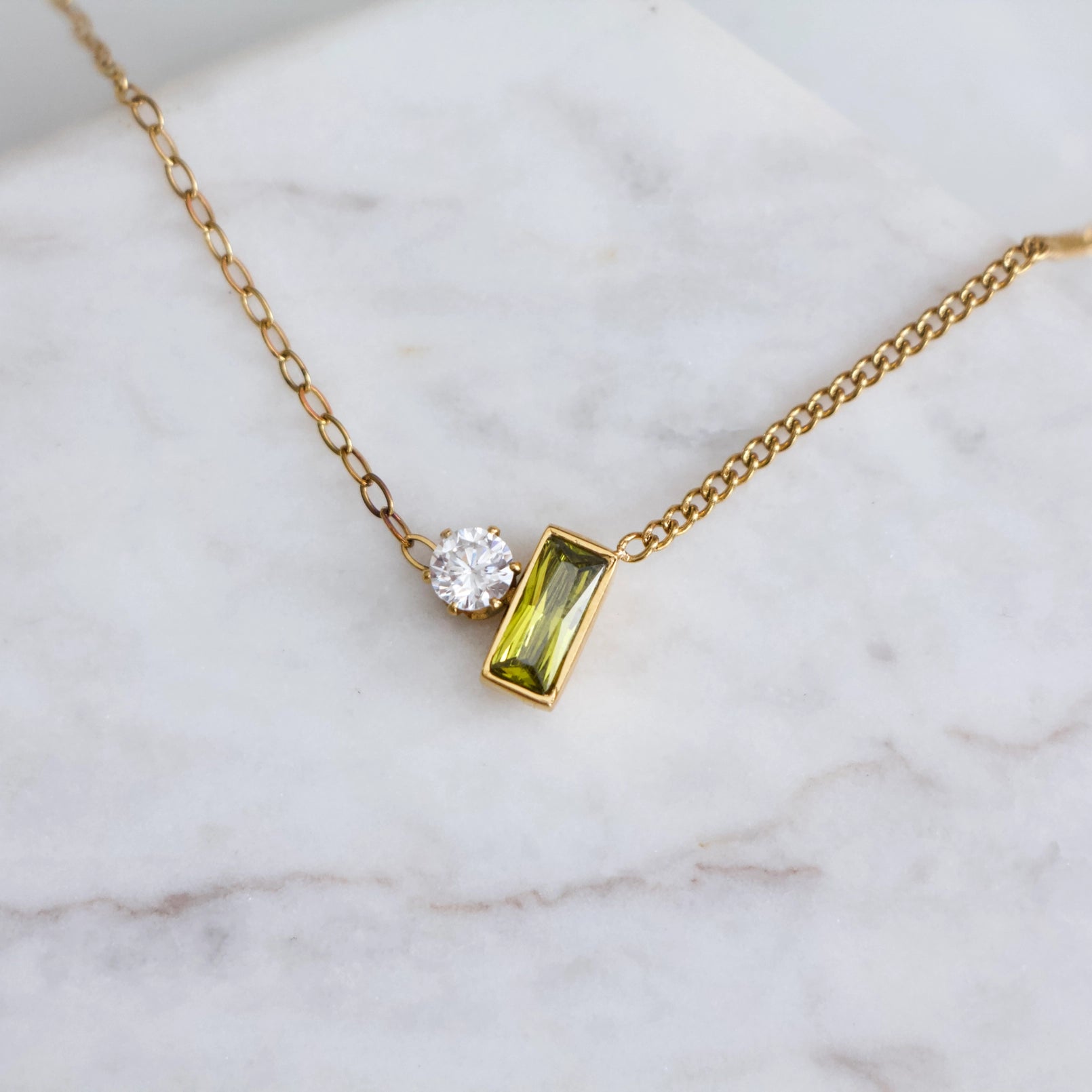 Olive, Emerald Zircon Geometric Necklace - Waterproof