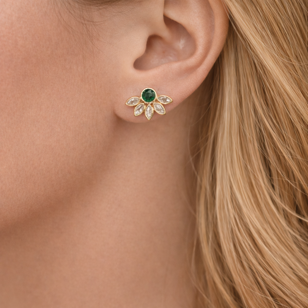 Emerald Green Flower Earrings