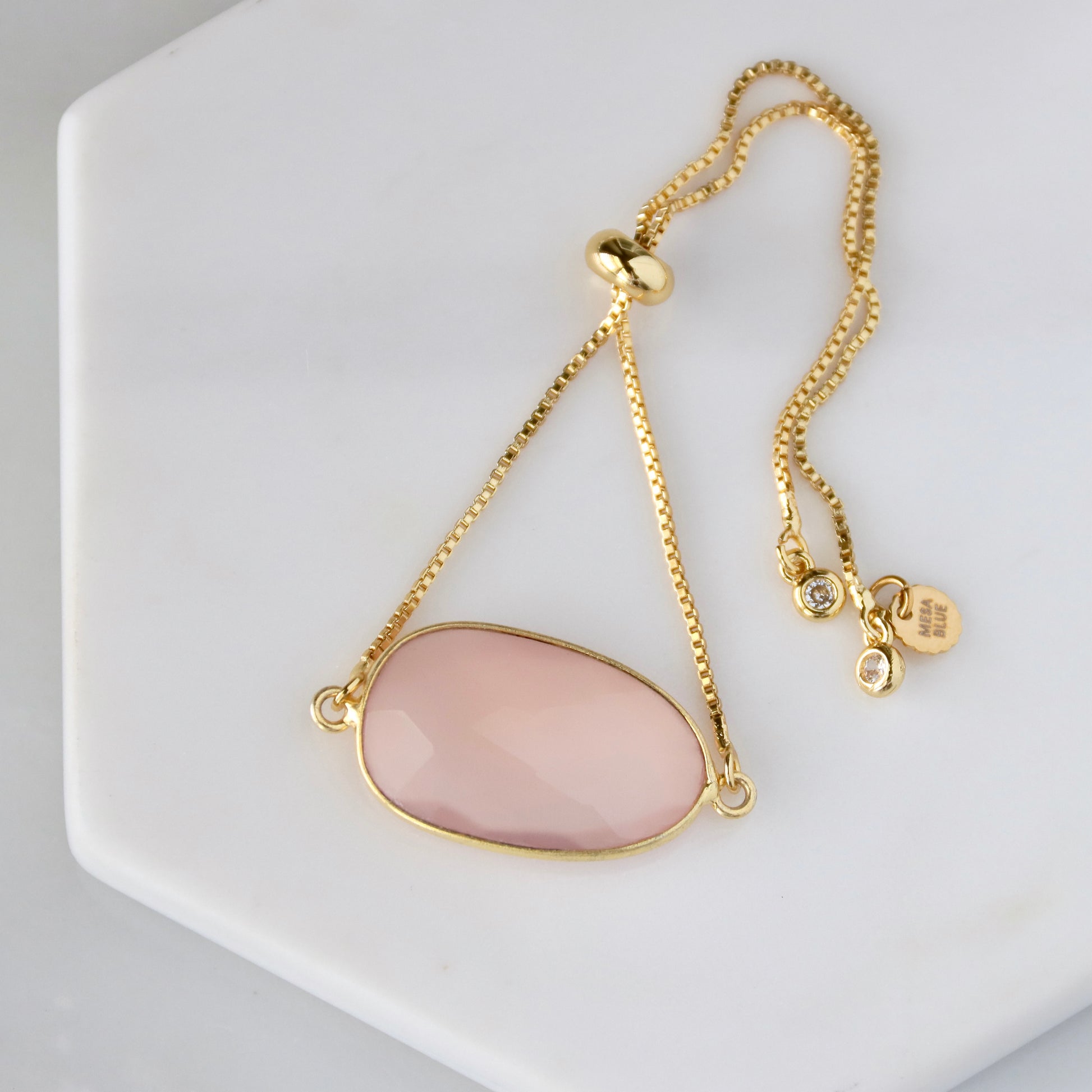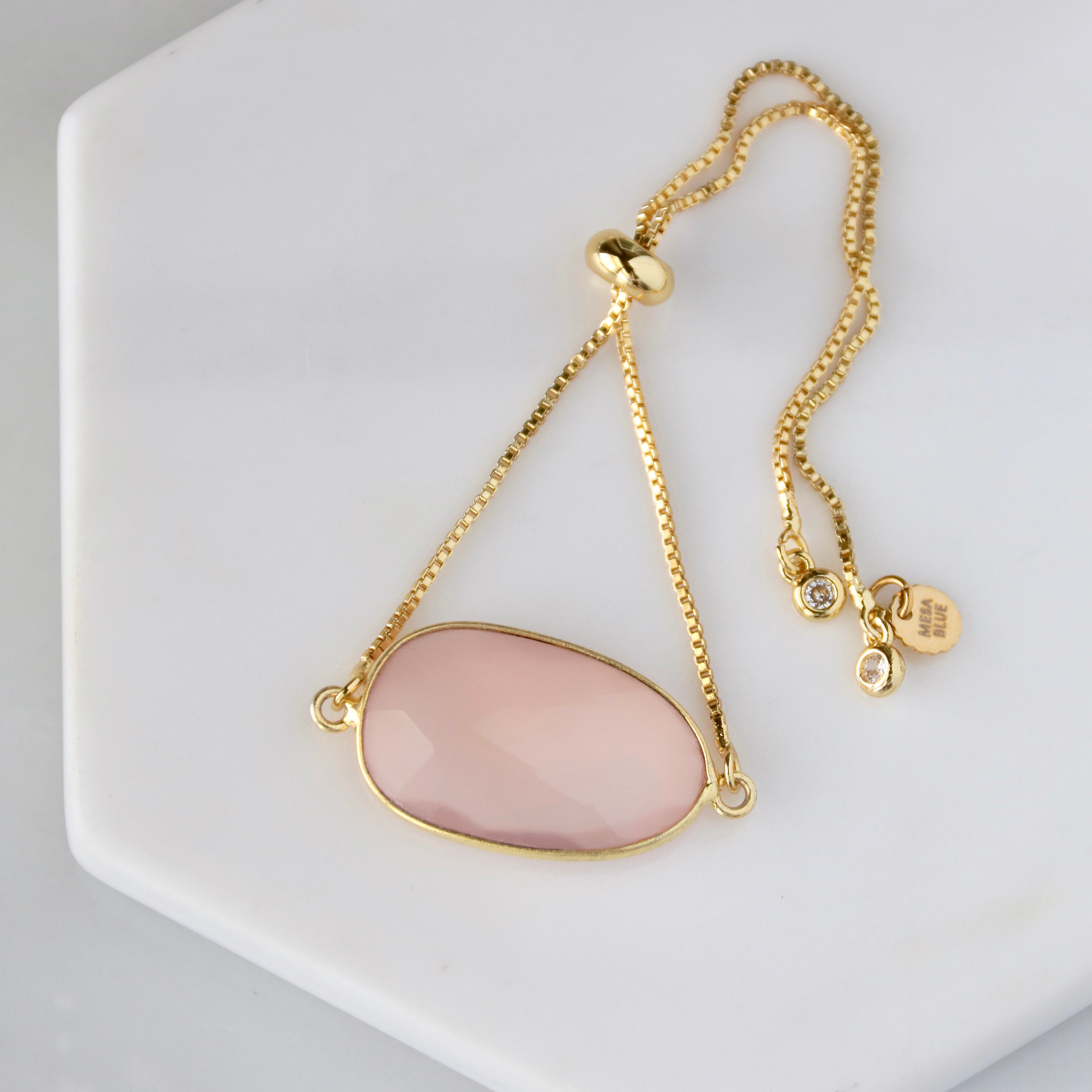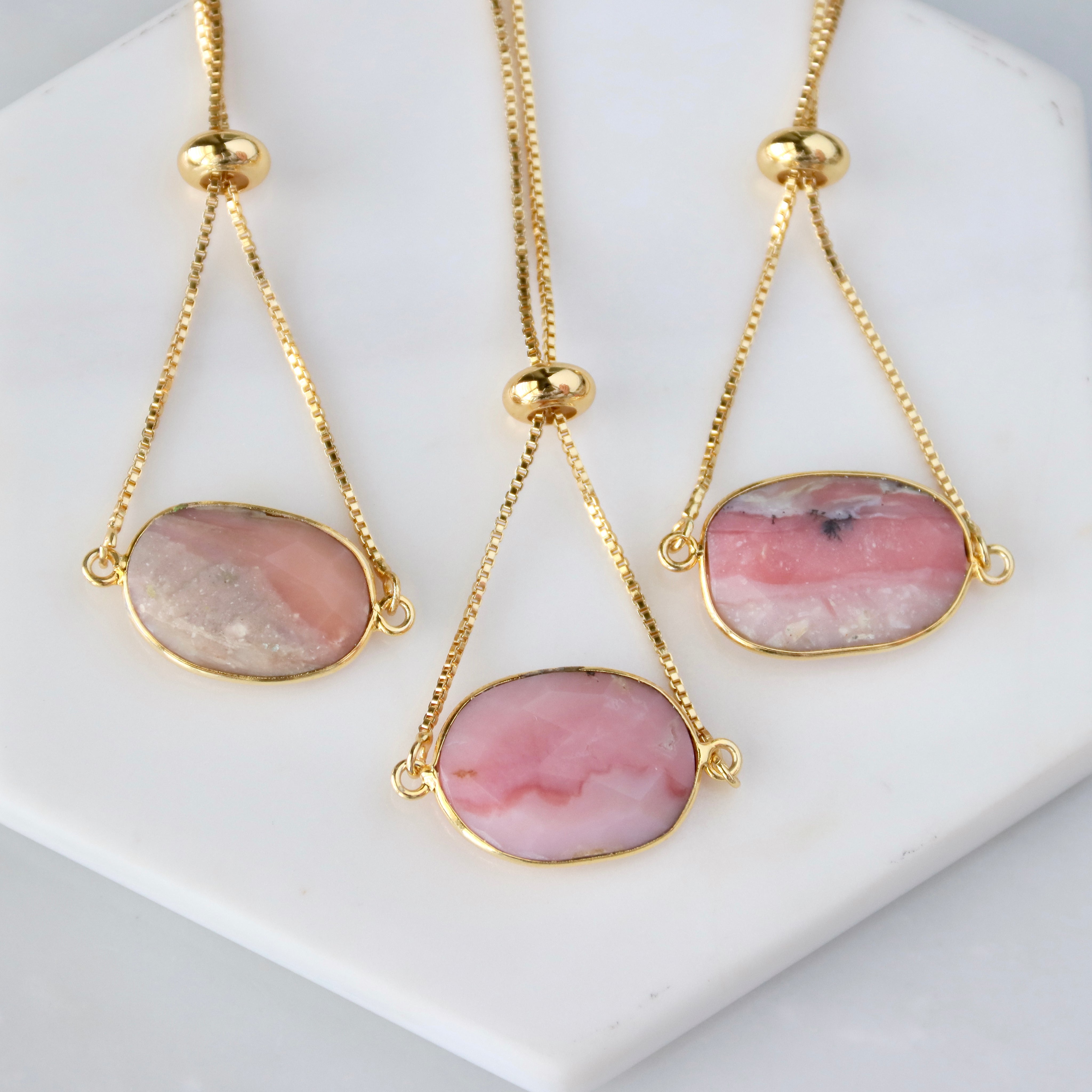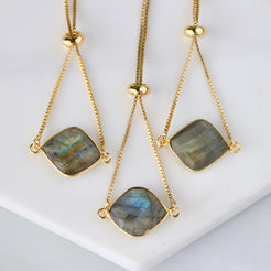 • MATERIAL: 18K gold-plated over brass, faceted labradorite, pink opal, or rose quartz • STONE SIZE: approximately 16x30mm