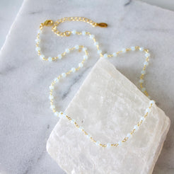 Faceted Opalite or Champagne CZ Beaded Necklace