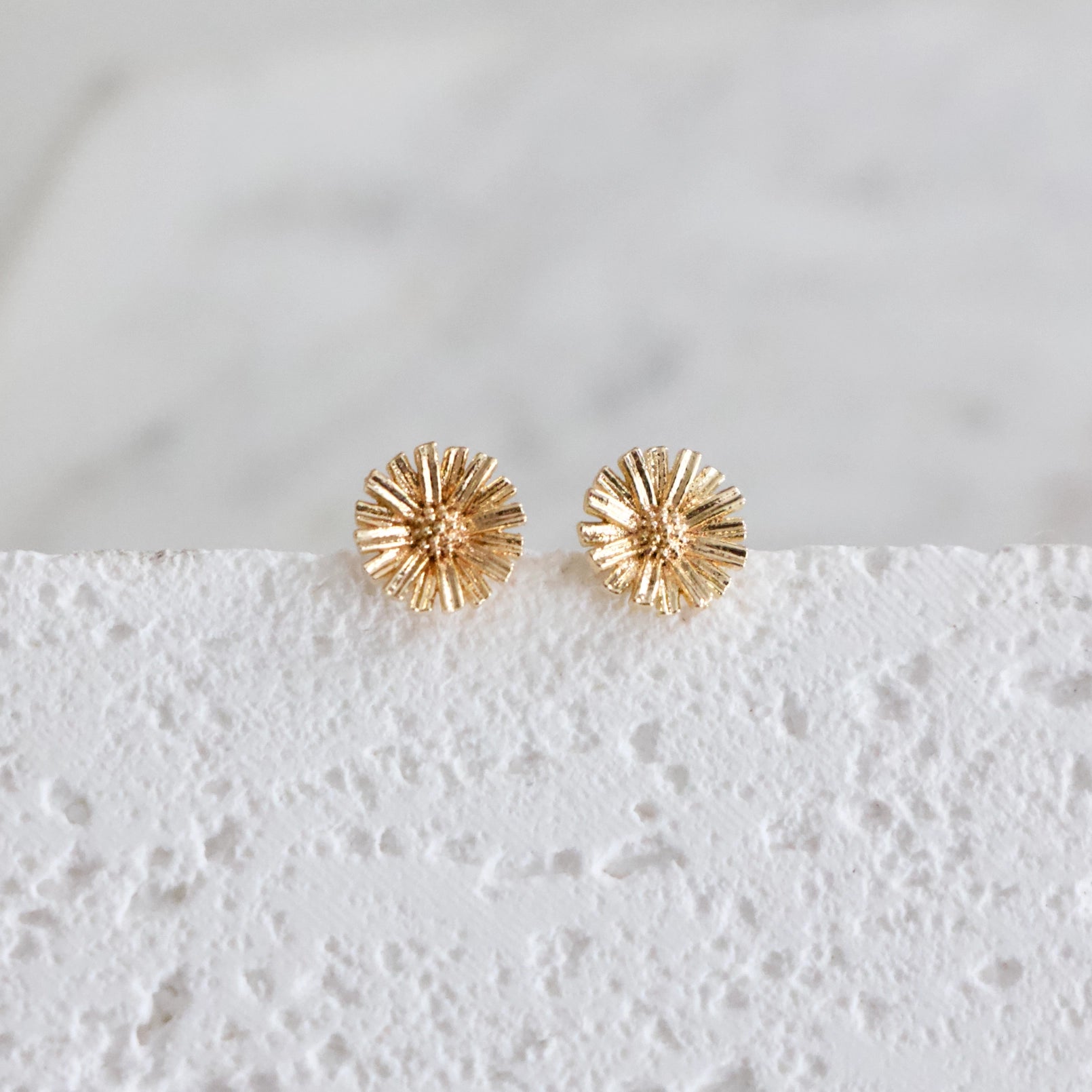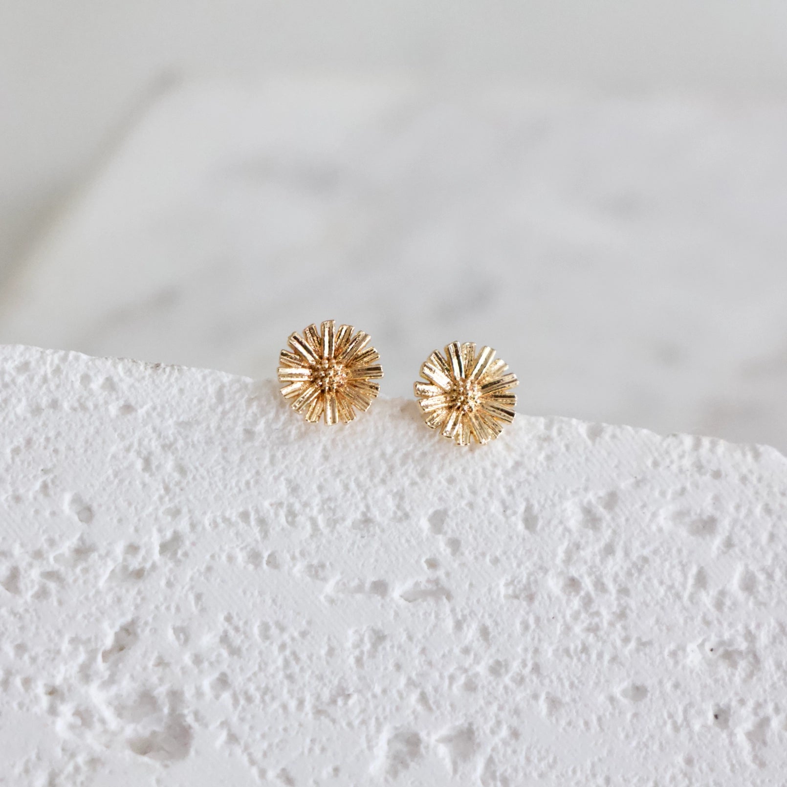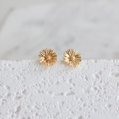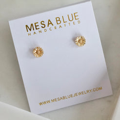 Daisy Earrings Light weight Details: • MATERIAL: 18K gold plated over brass, lead and nickel free • SIZE: 6mm Arrives on a lipped, branded earring card