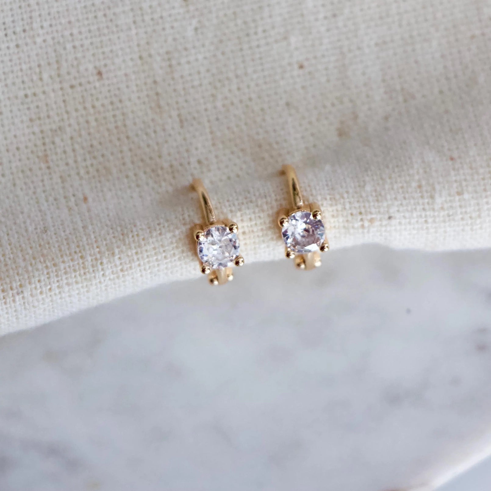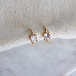 One touch gold-plated huggie Details:• MATERIAL: 18K gold plated over brass, 4mm CZ• HOOP SIZE: 10x13mm
