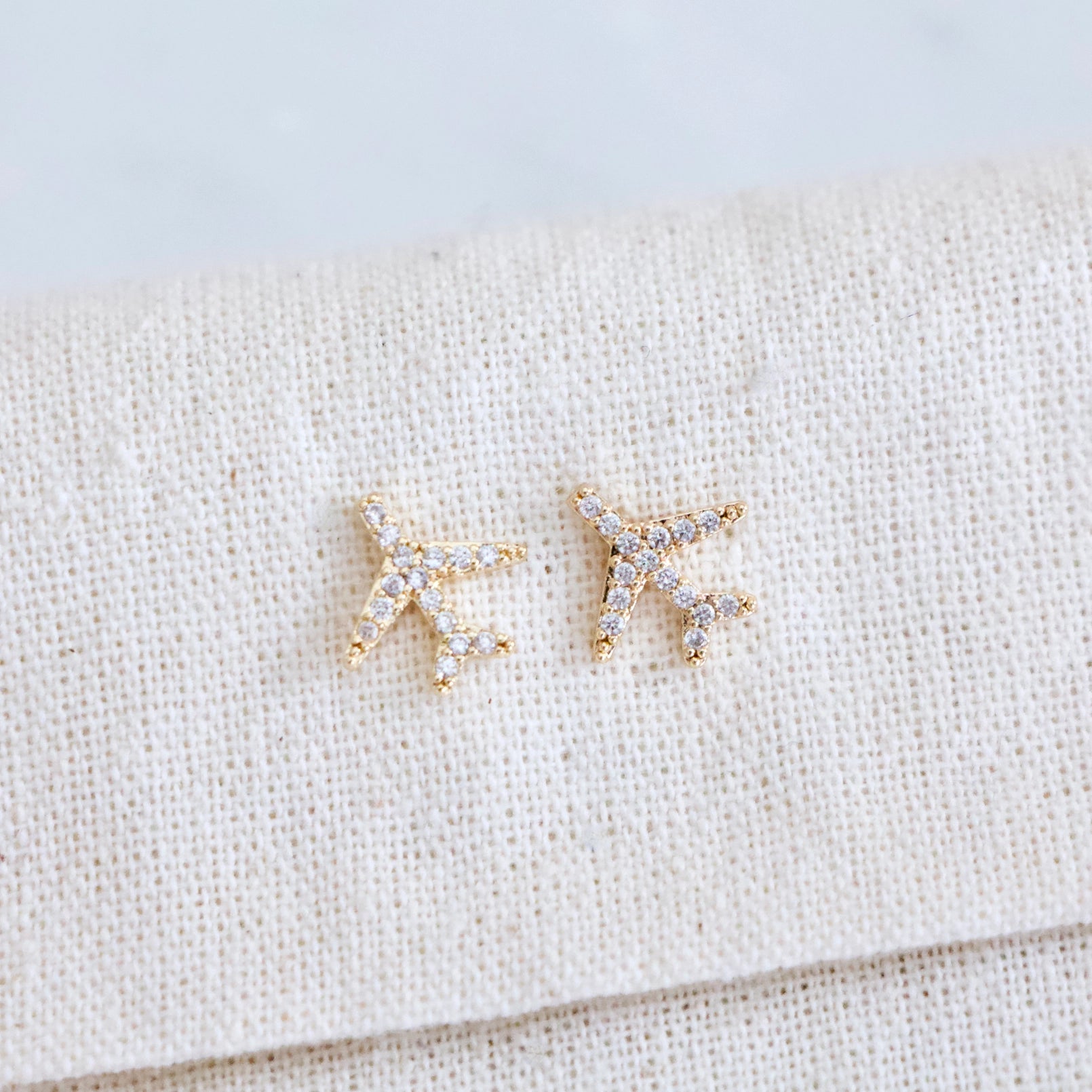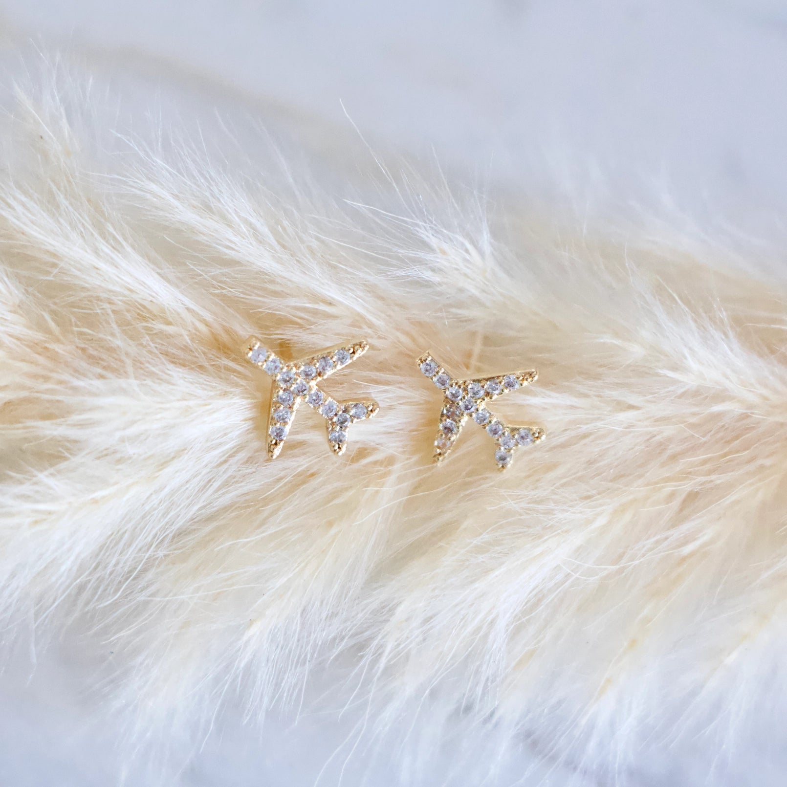 Pave CZ Airplane EarringsLight weightDetails:• MATERIAL: CZ, 18K gold plated over brass, lead and nickel free• SIZE: ...