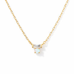 Details:• MATERIAL: 18k gold plated opal and CZ charm, gold filled chain• PENDANT SIZE: 5x10mm• CHAIN LENGTH: gold fi...