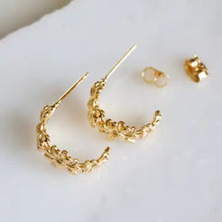 Details: • MATERIAL: 18K gold plated over brass • HOOP SIZE: 15mm Arrives with a branded jewelry card