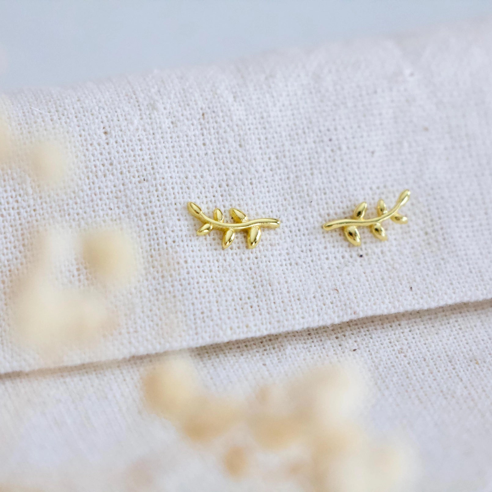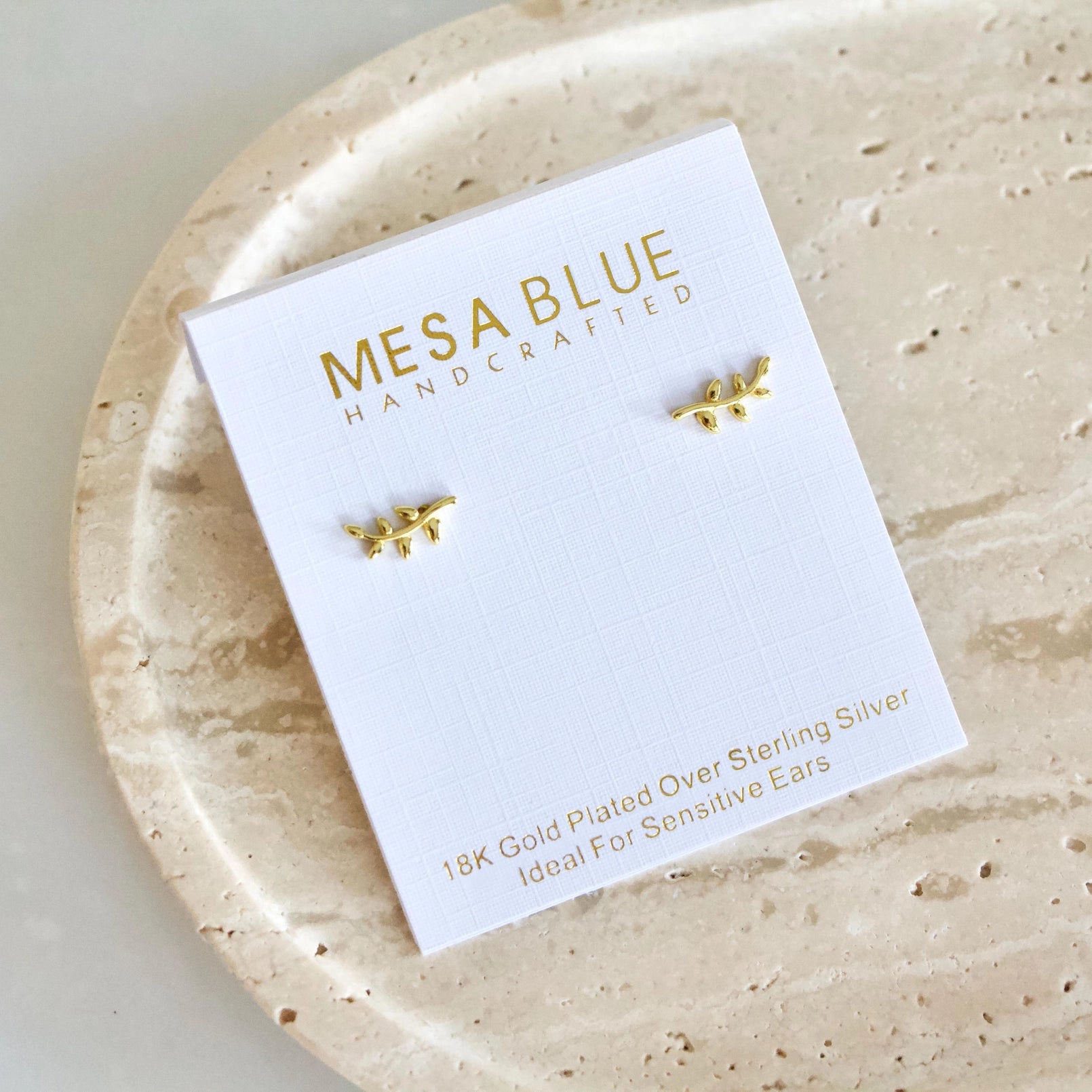 Olive Branch Earrings Hypoallergenic, Ideal for sensitive ears Details: • MATERIAL: 18K gold-plated over .925 sterling silver post • SIZE: 10x5mm