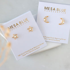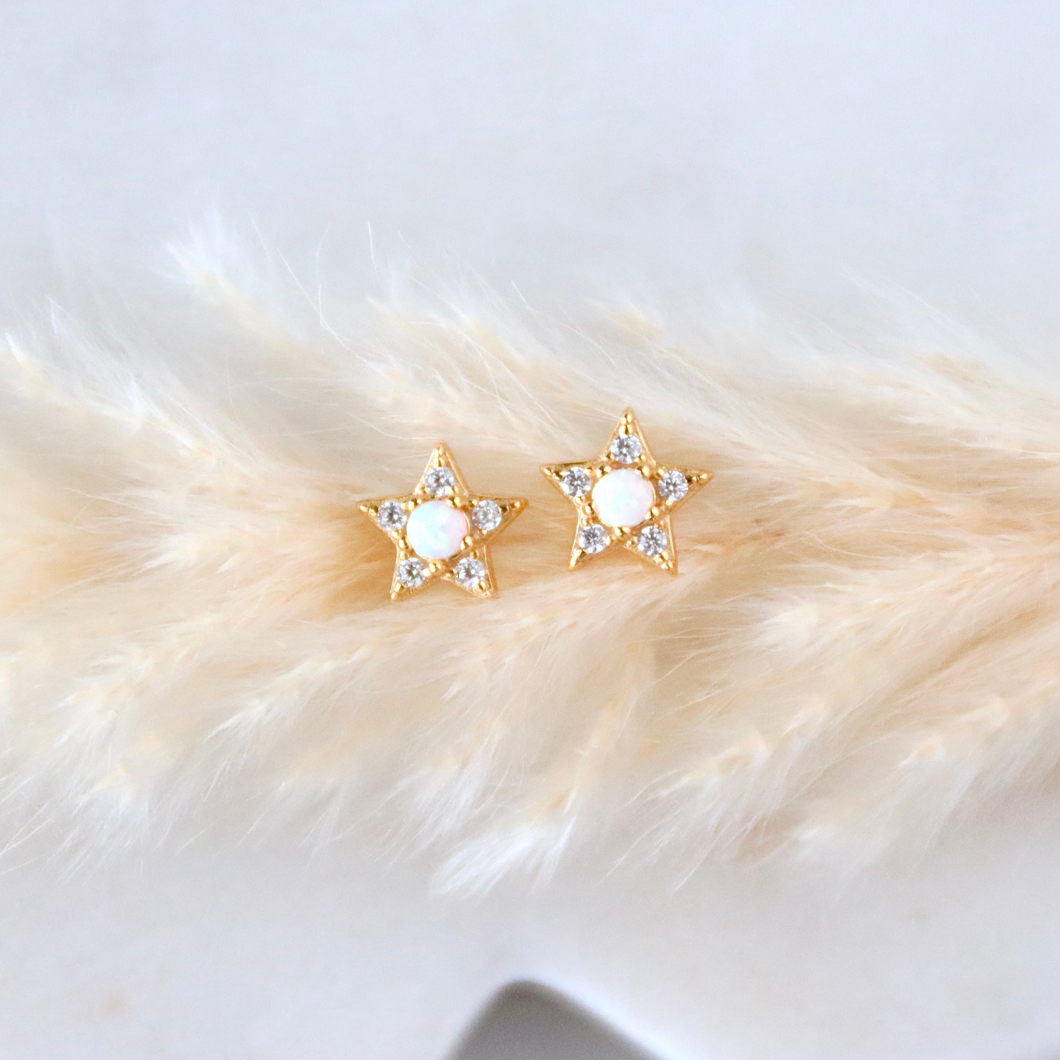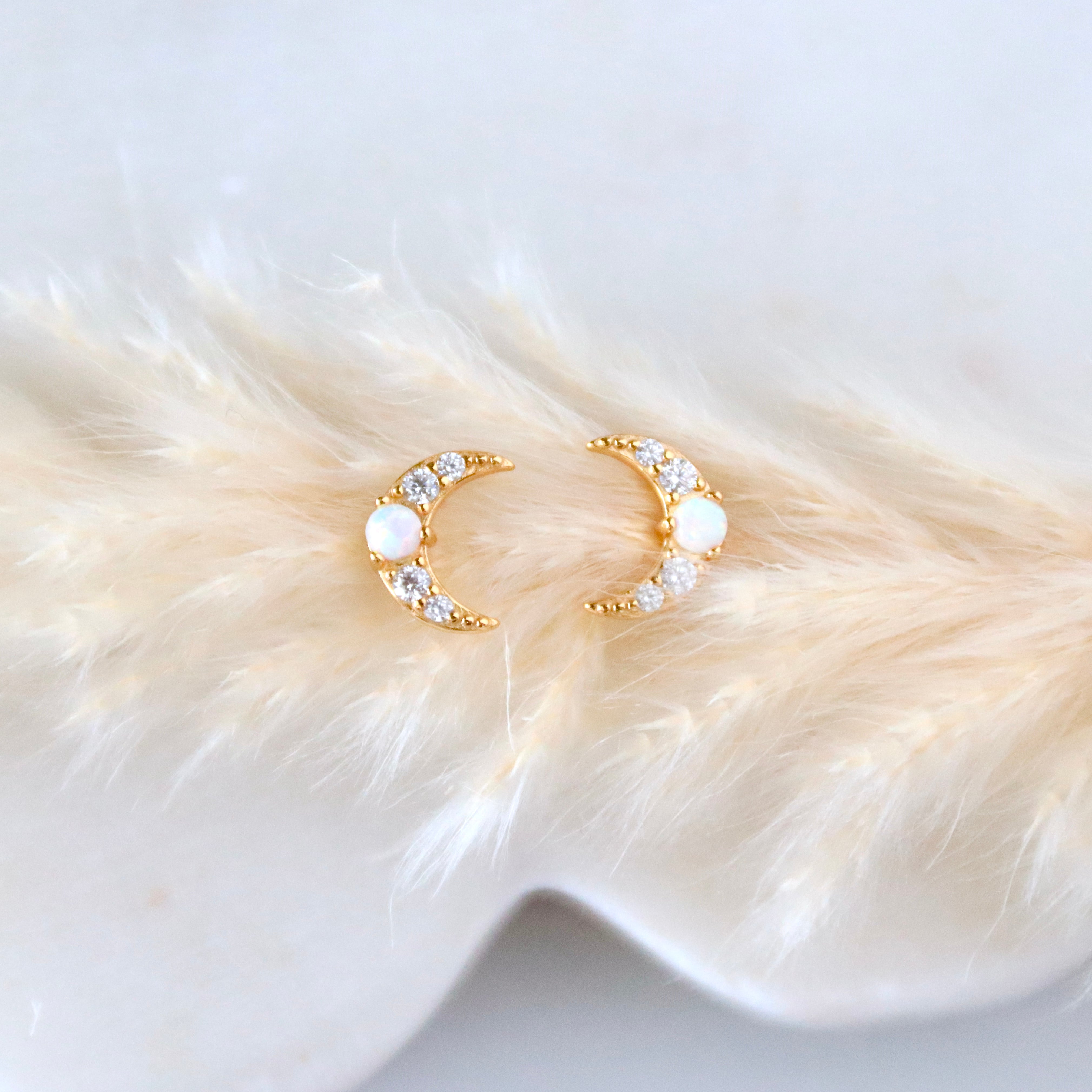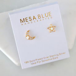 Opal Moon and Star Stud Earrings - Hypoallergenic