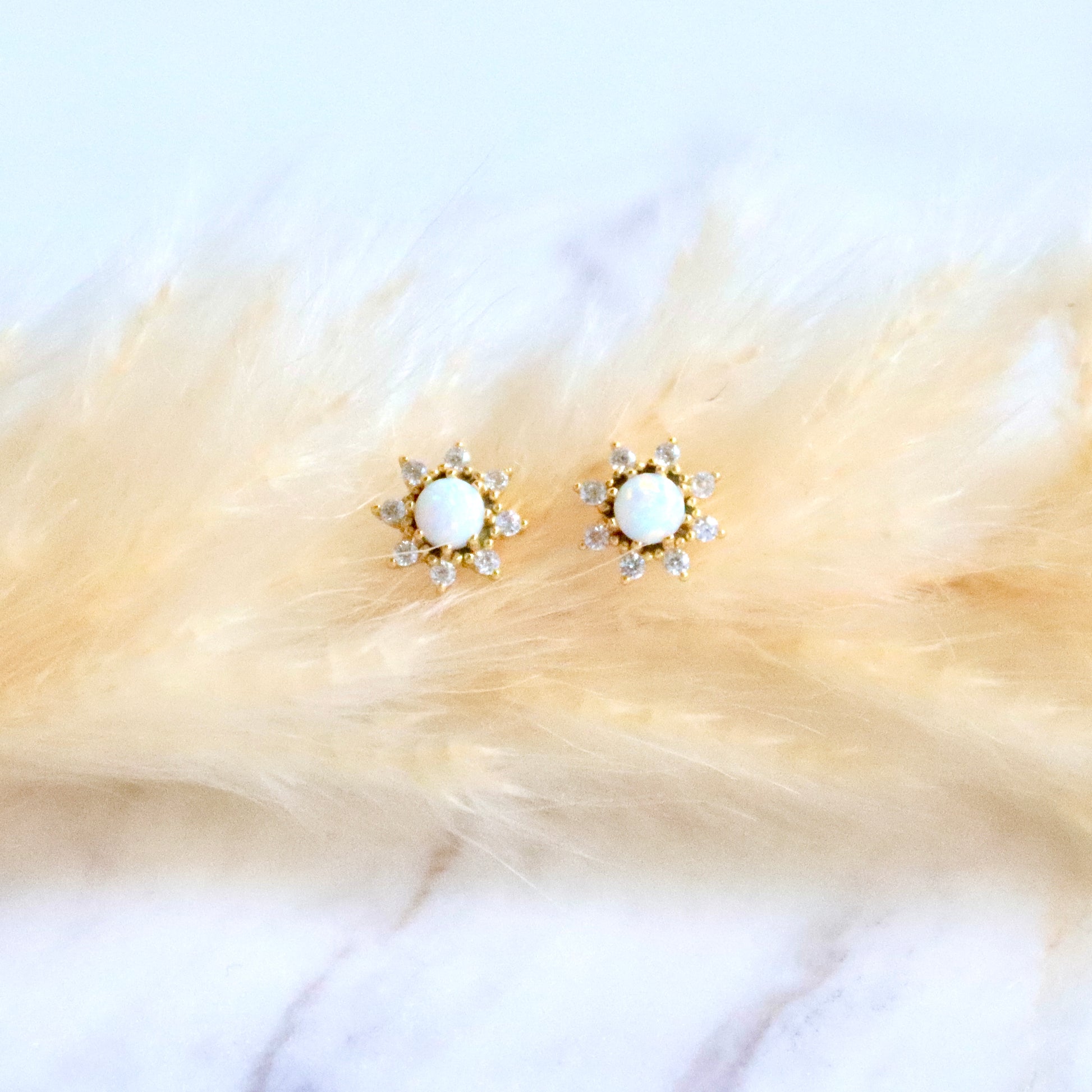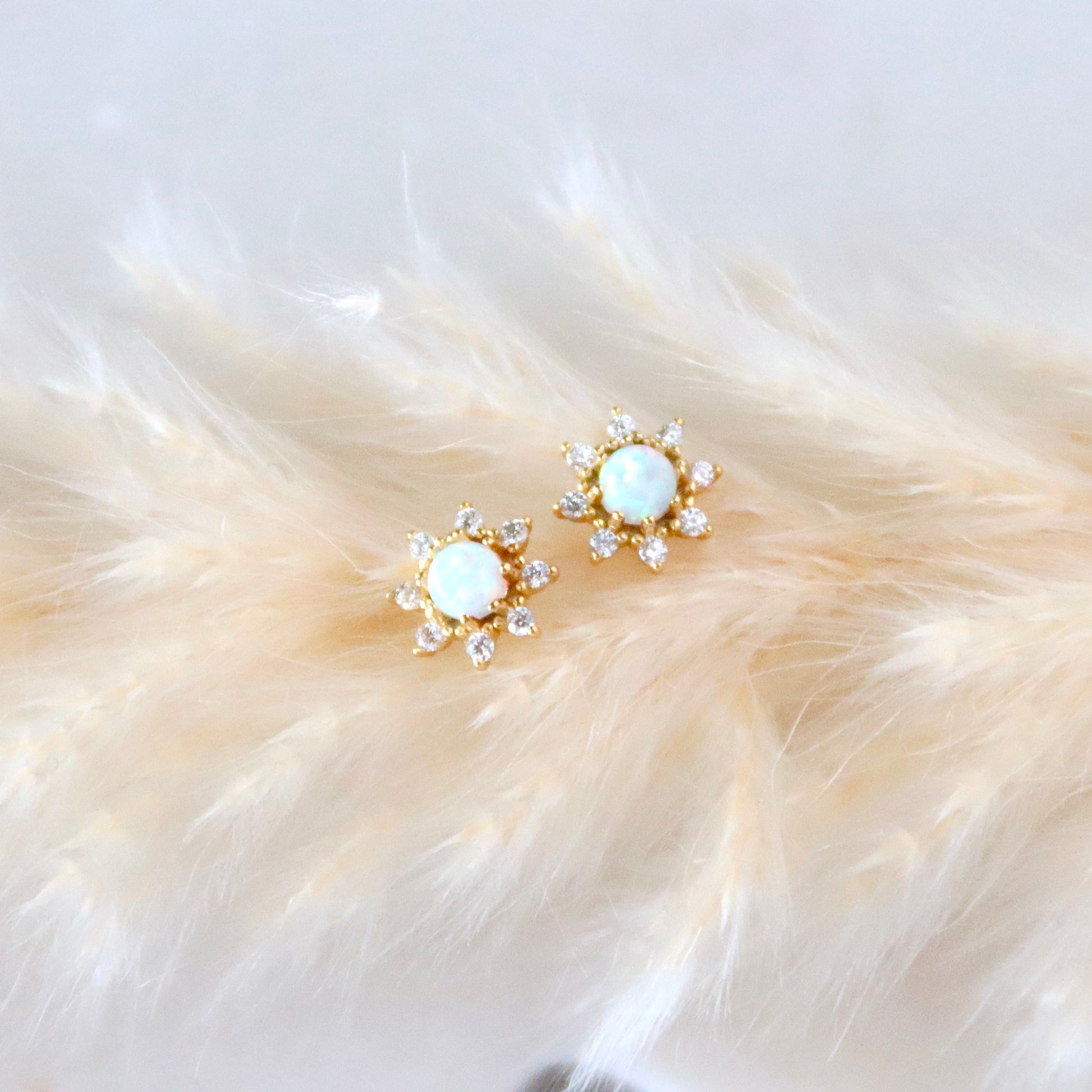 Opal Flower Stud Earrings - Hypoallergenic