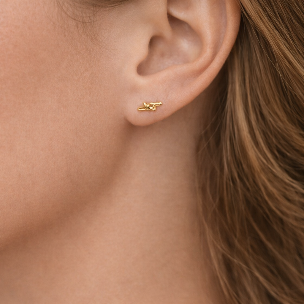 Tiny Love Knot EarringsLight weightDetails:• MATERIAL: 18K gold plated over brass, lead and nickel free• SIZE: 3x7mm