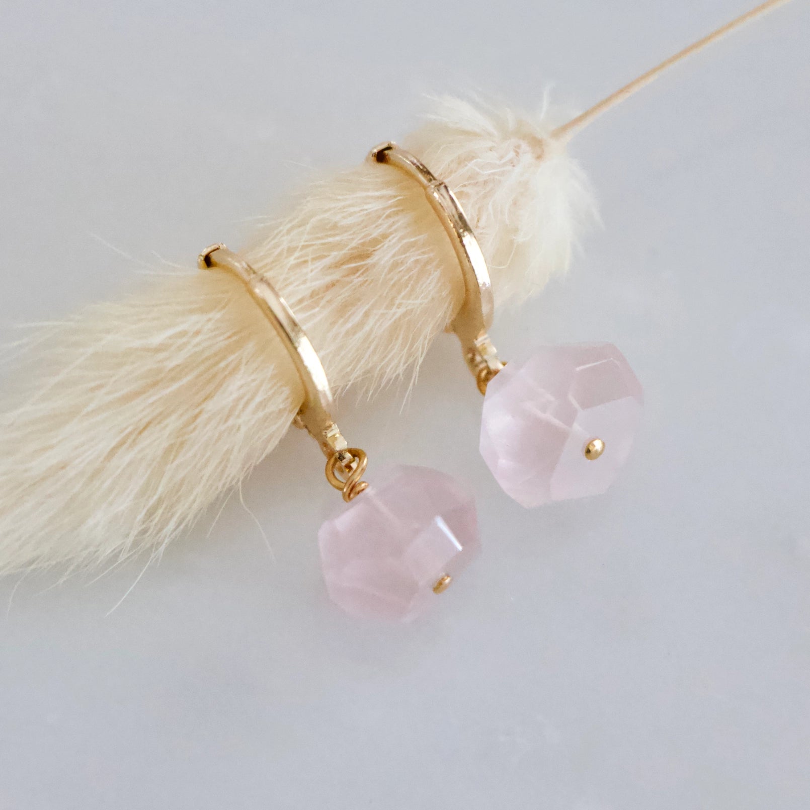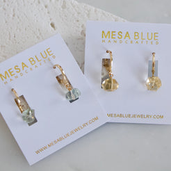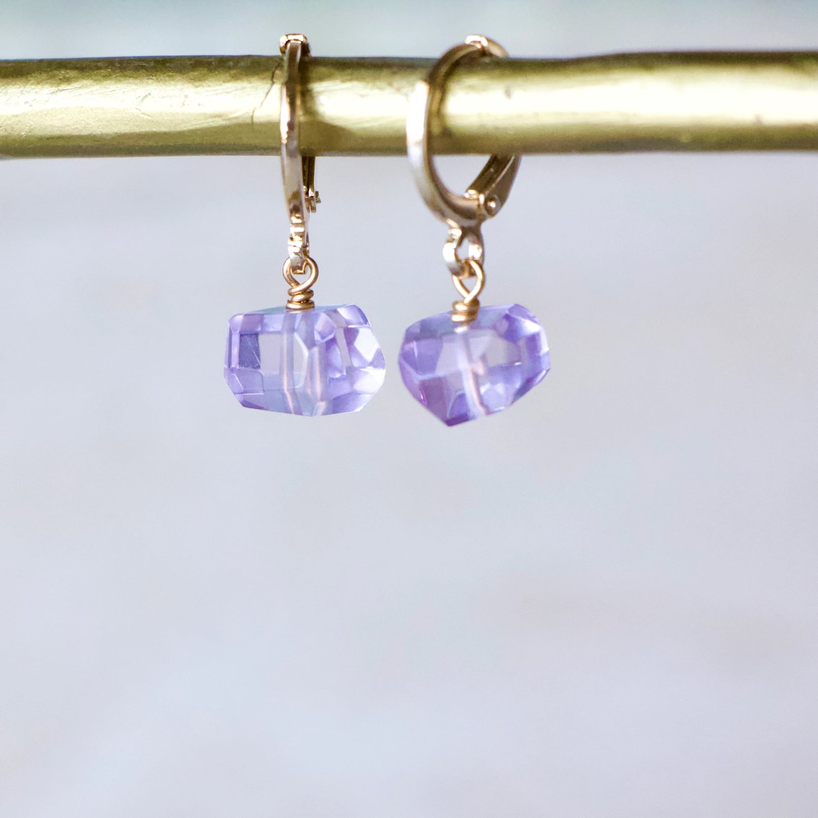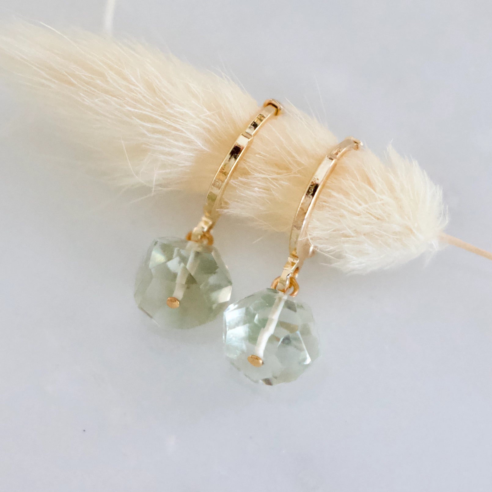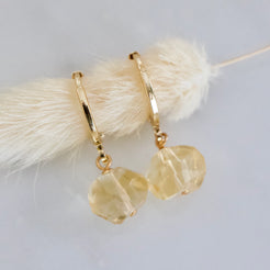 Details: • MATERIAL: 24K gold plated, faceted amethyst rose quartz, citrine, or prasiolite stones • HOOP SIZE: 14x12mm • STONE SIZE: approximately 8-10mm