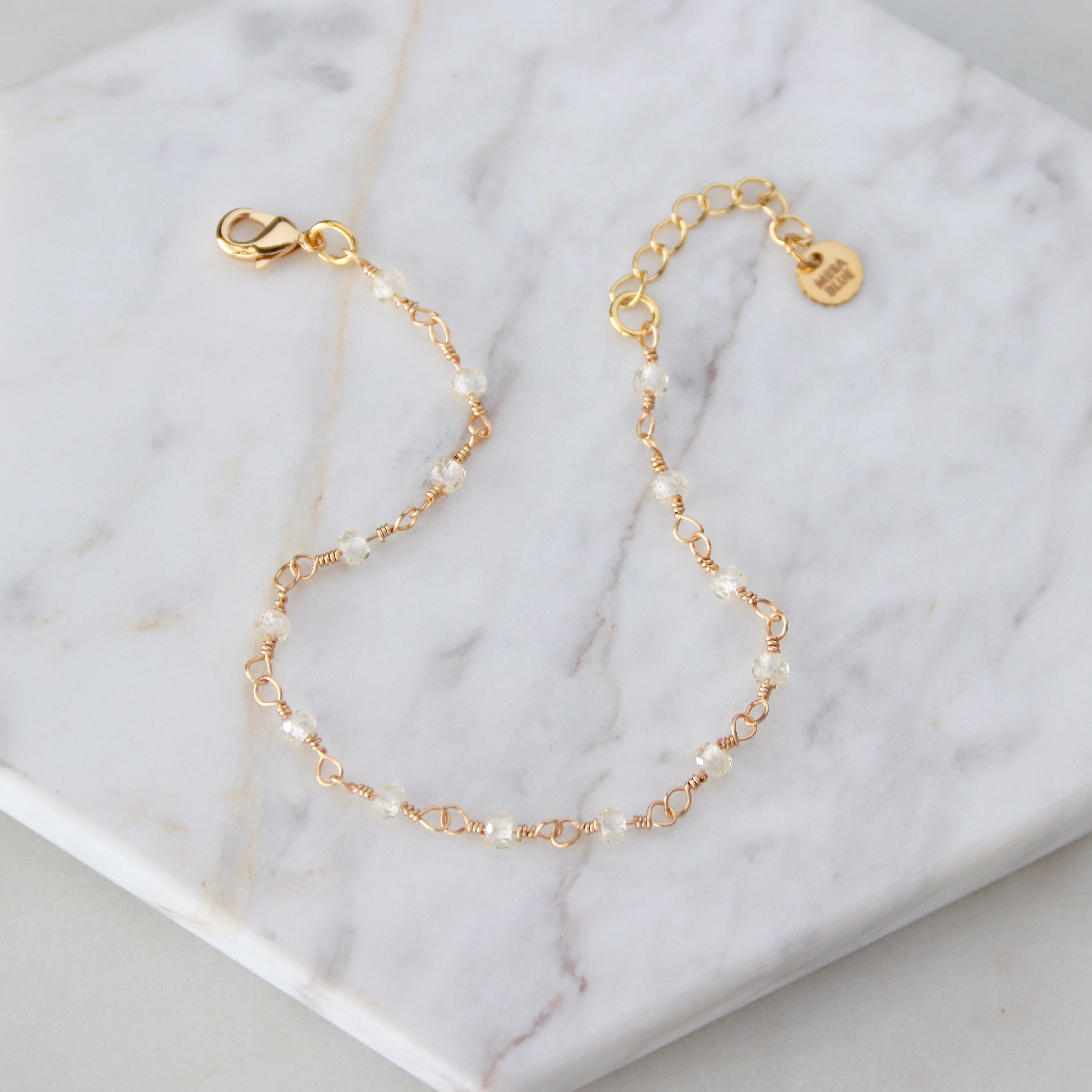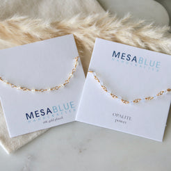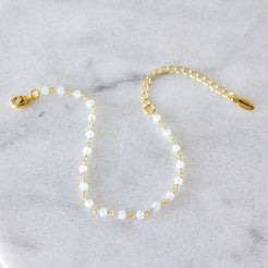 Details:• MATERIAL: 18K gold plated over brass, 3mm faceted opalite beads• CHAIN LENGTH: 6" +  2" extender chain• CLA...