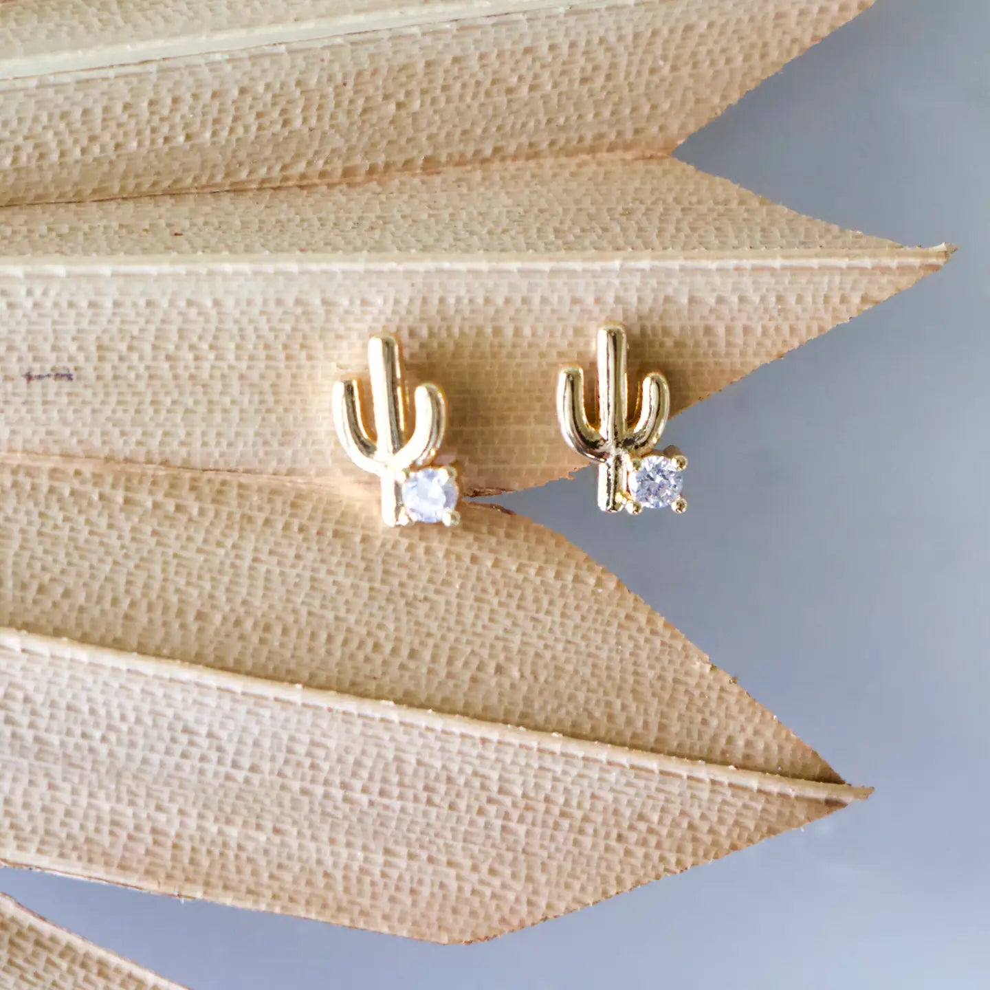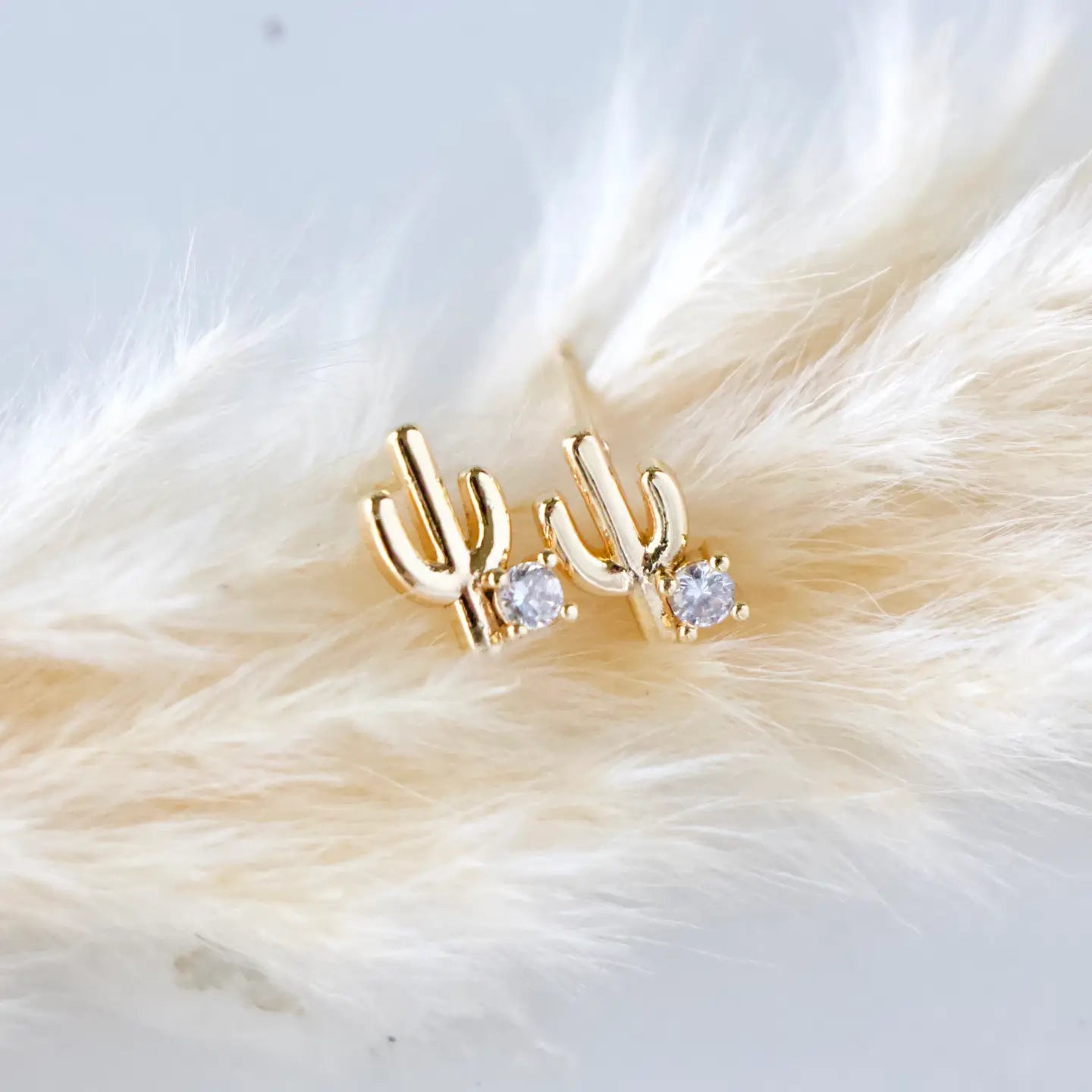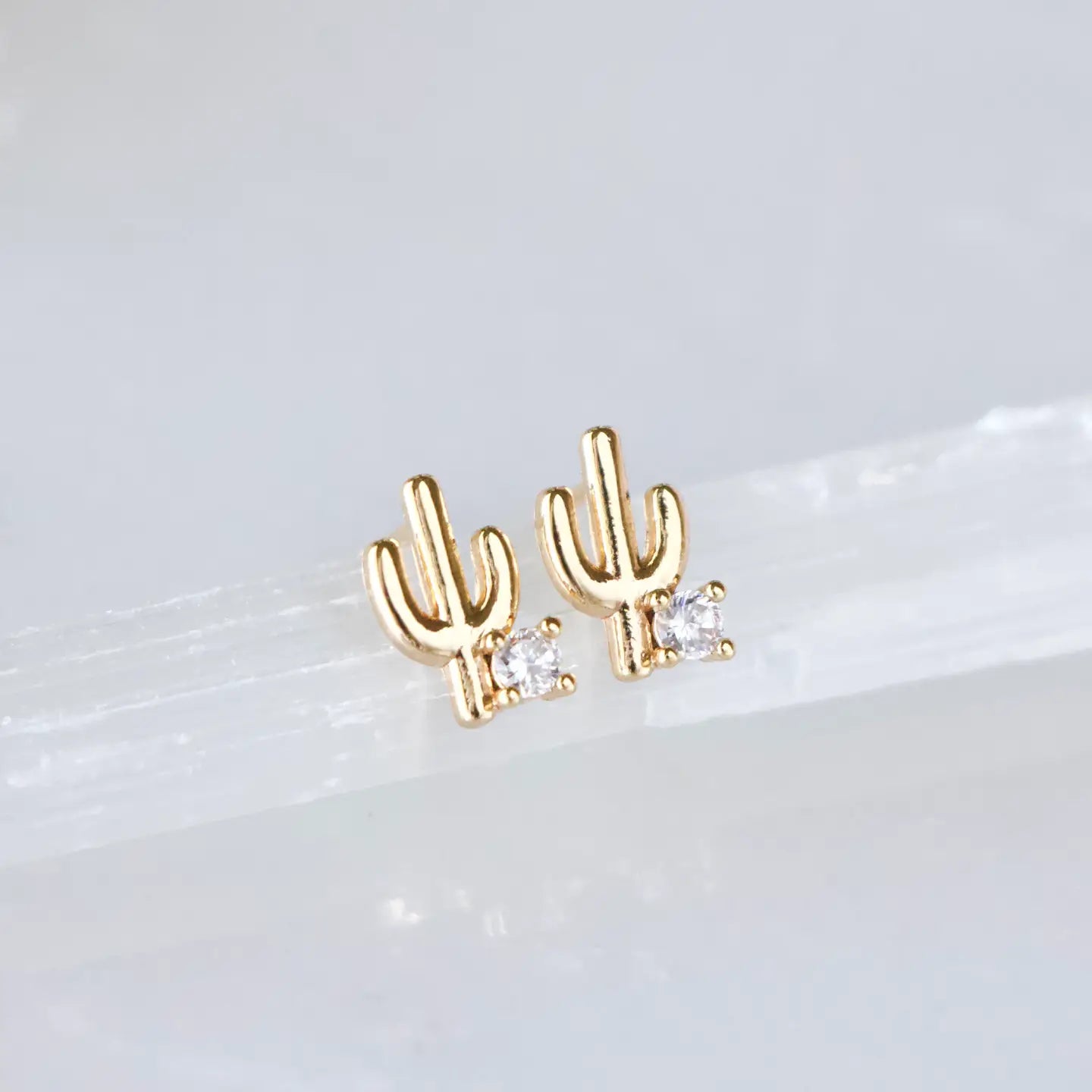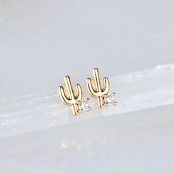 Pave CZ Cactus Earrings Tarnish resistant Light weight Details: • MATERIAL: CZ, 18K gold plated over brass, lead and nickel free • SIZE: 9x6mm Arrives with a lipped, branded earring card