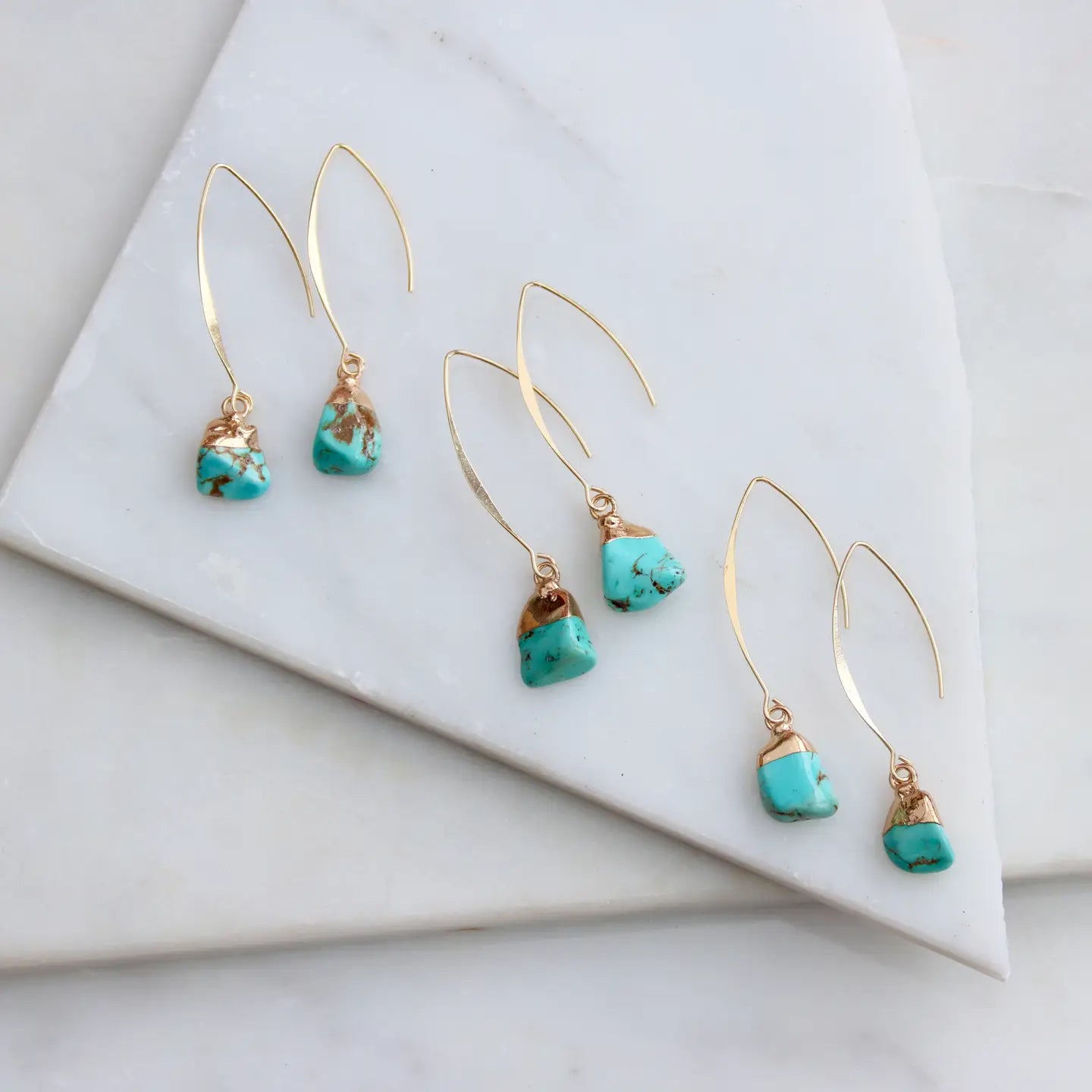 Details:• MATERIAL: Turquoise nugget, 18K gold or silver plated• EAR WIRE SIZE: 19x38...